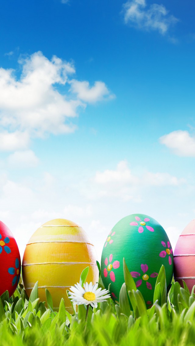 Painted Easter Eggs Flowers Grass Wallpaper - 640x1136