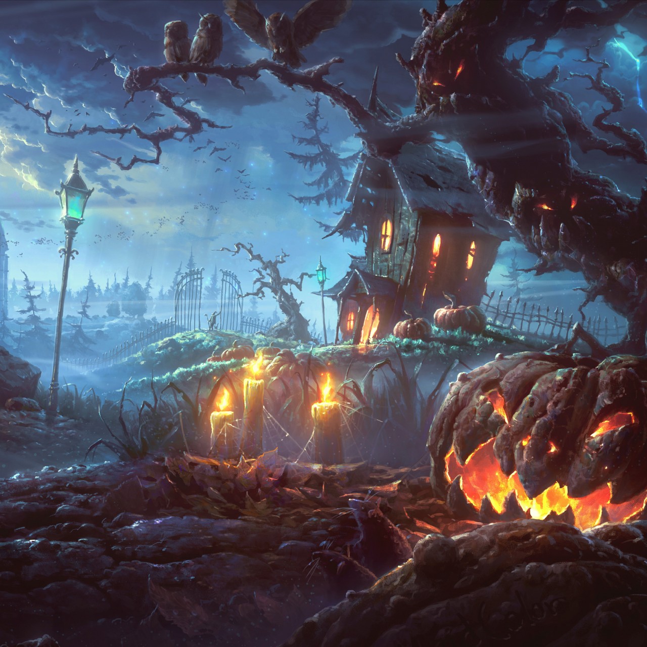 Halloween Dark Night Gothic Art Wallpaper - 1280x1280