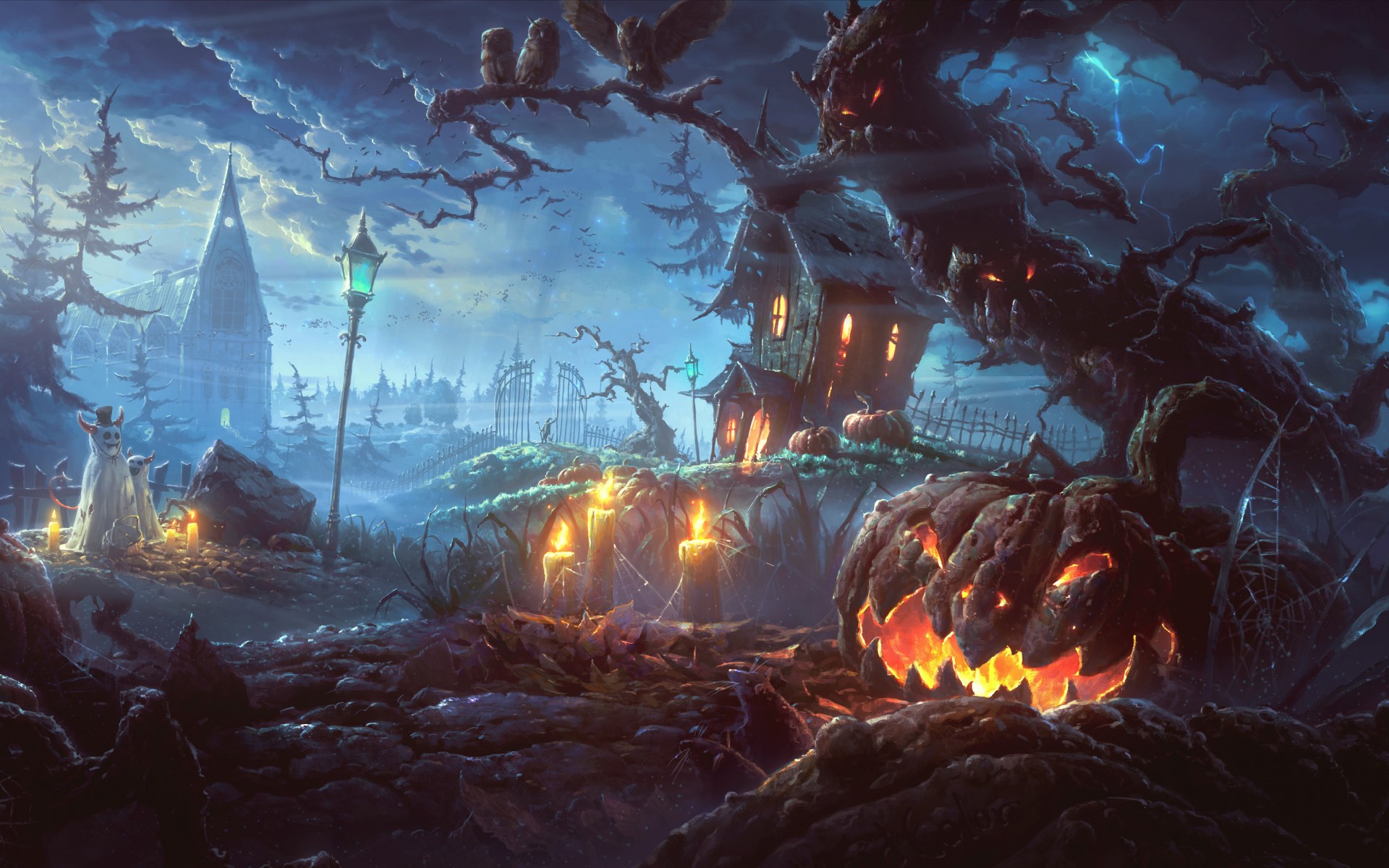 Halloween Dark Night Gothic Art Wallpaper - 1920x1200