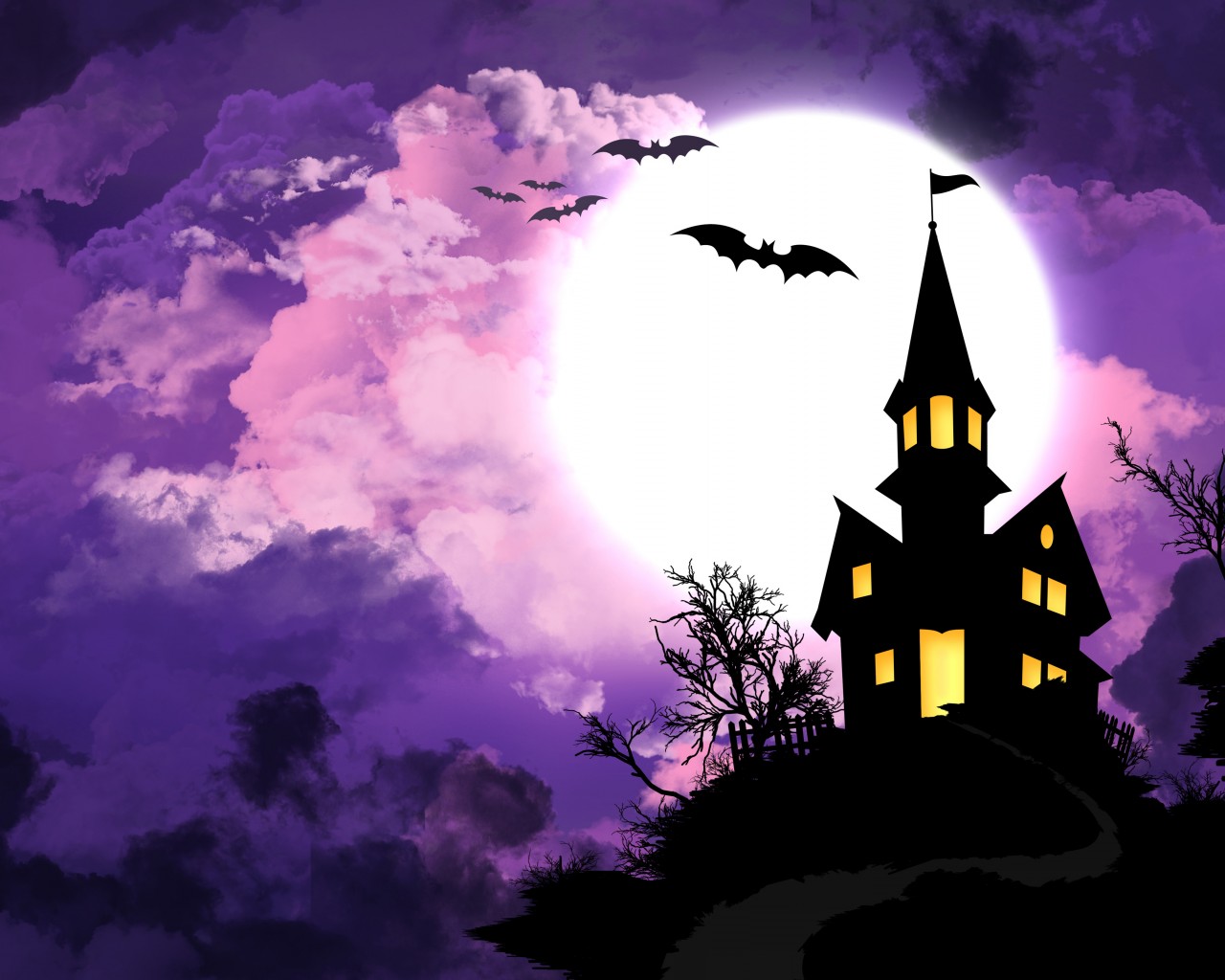 Halloween Full Moon Bats Wallpaper - 1280x1024