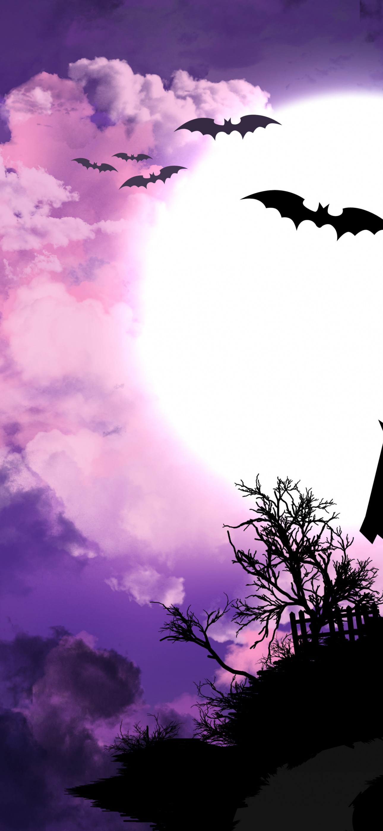Halloween Full Moon Bats Wallpaper - 1290x2796