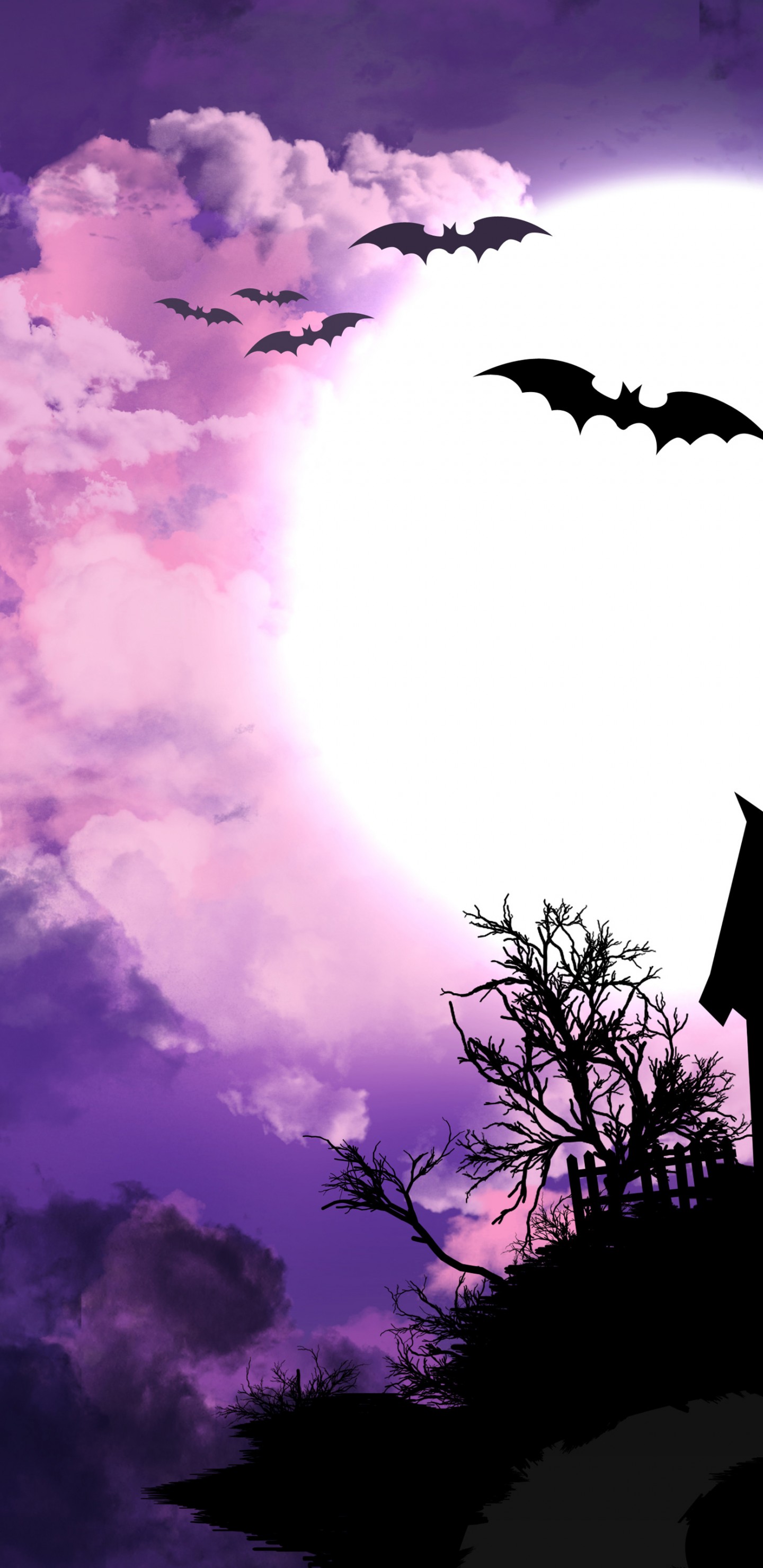 Halloween Full Moon Bats Wallpaper - 1440x2960