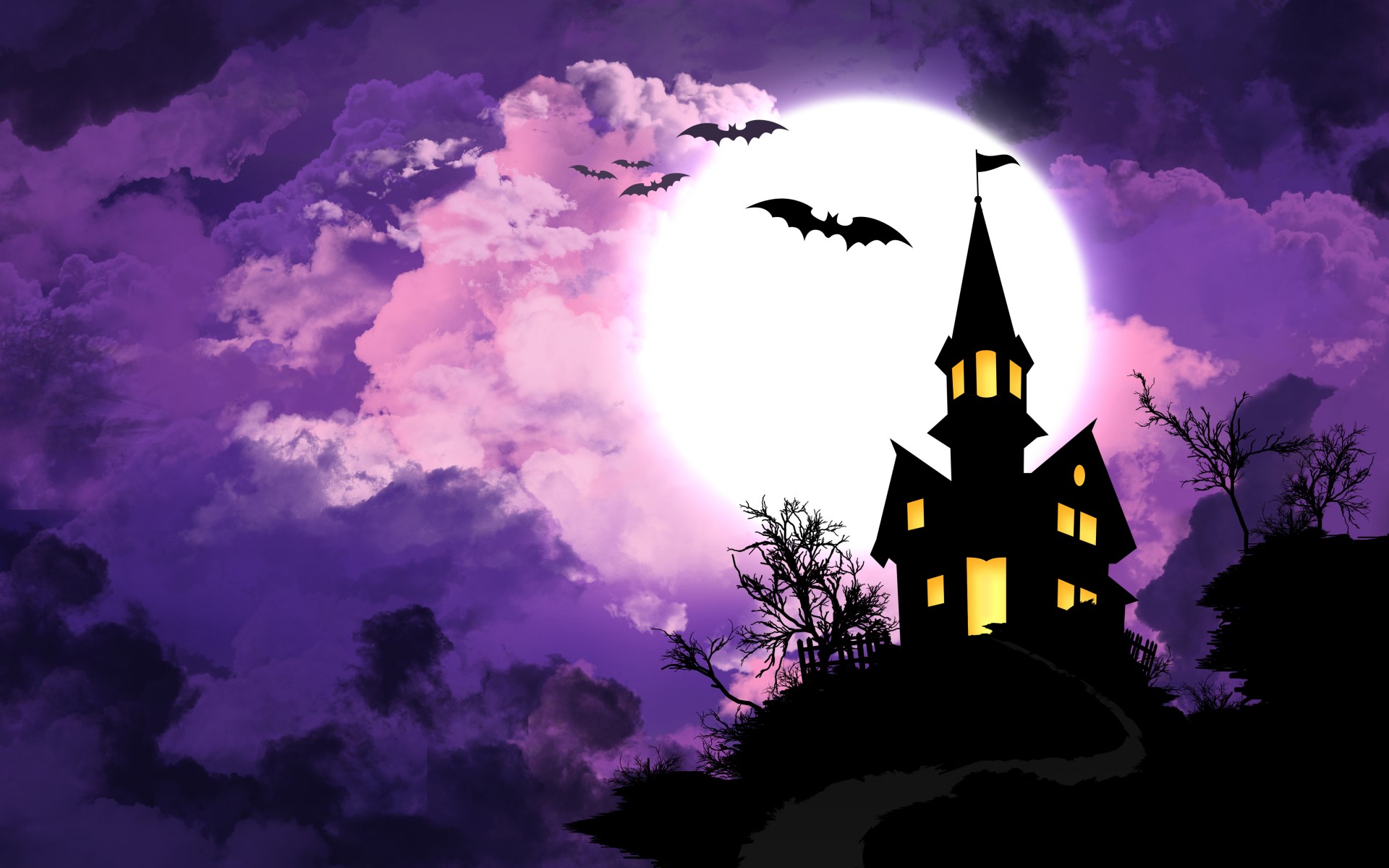 Halloween Full Moon Bats Wallpaper - 1920x1200