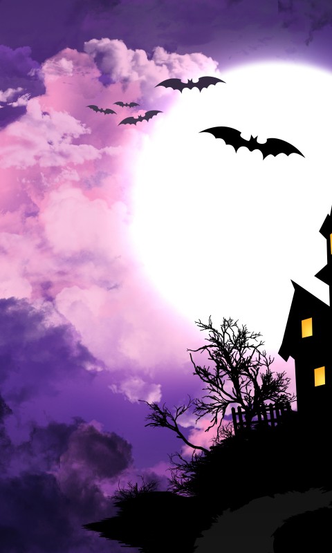 Halloween Full Moon Bats Wallpaper - 480x800