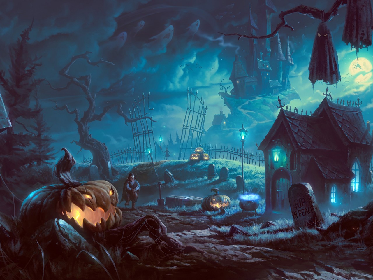Halloween Pumpkin Moon Castle Wallpaper - 1280x960