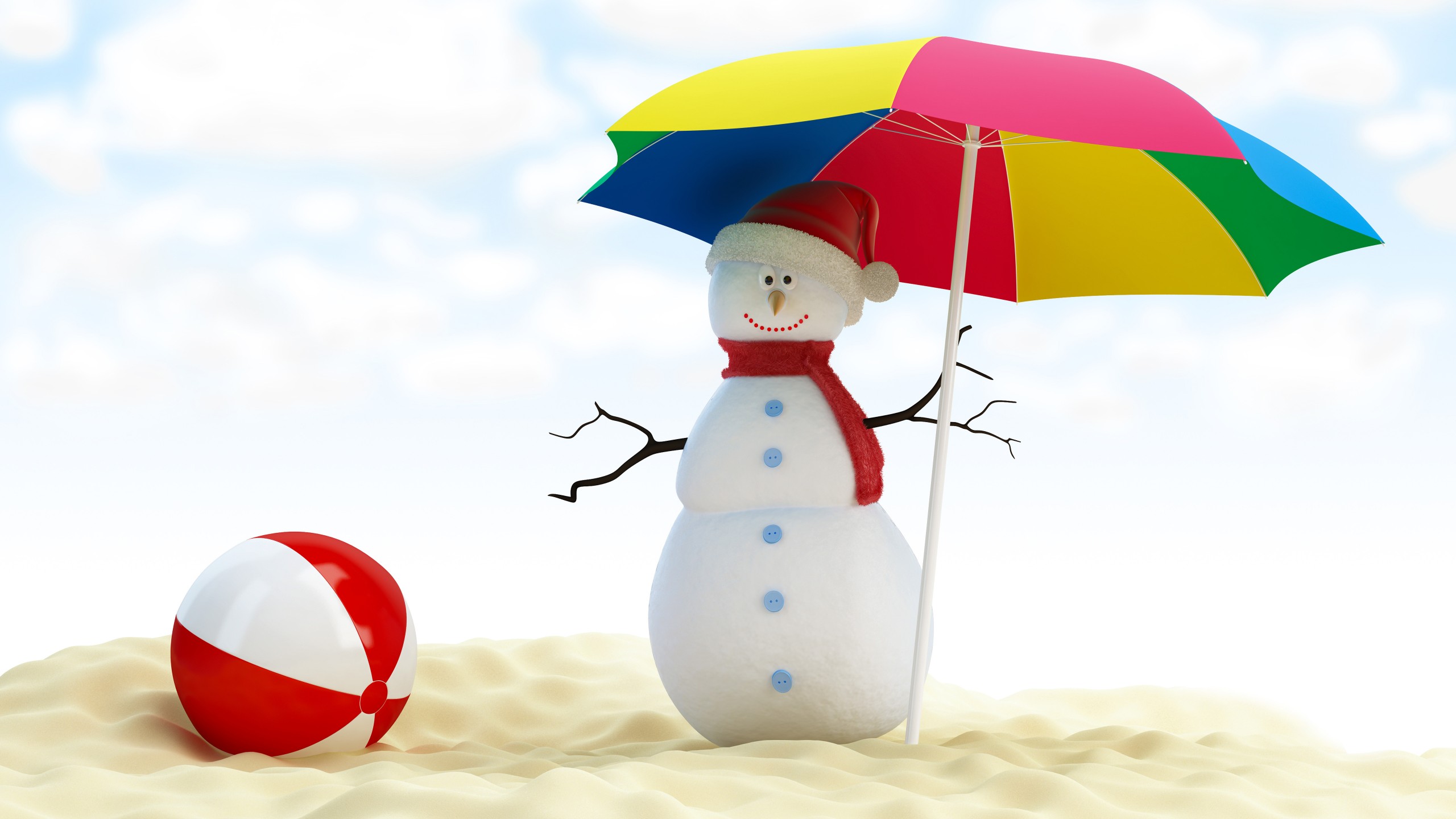 Snowman Umbrella Beach Ball Wallpaper - 2560x1440