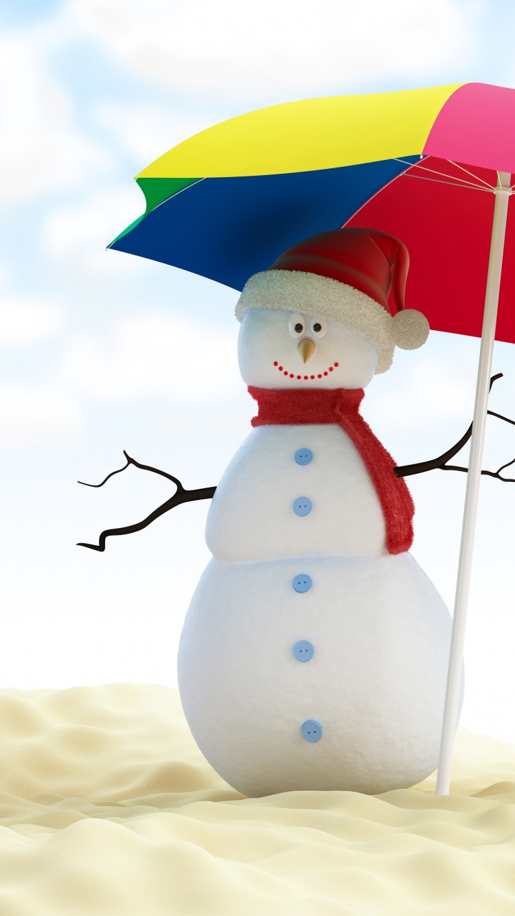 Snowman Umbrella Beach Ball Wallpaper - 750x1334