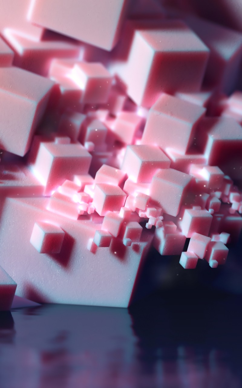 3D Pink Crystal Cubes Wallpaper - 800x1280