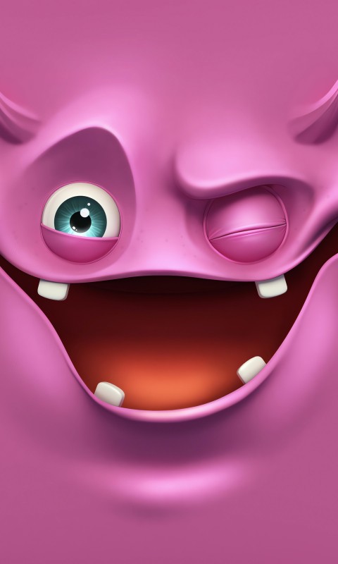 3D Pink Wink Face Wallpaper - 480x800