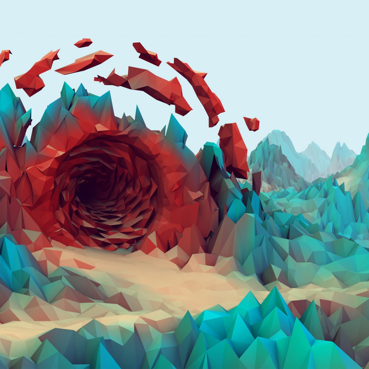 Low Poly Red Portal Wallpaper - 1280x1280