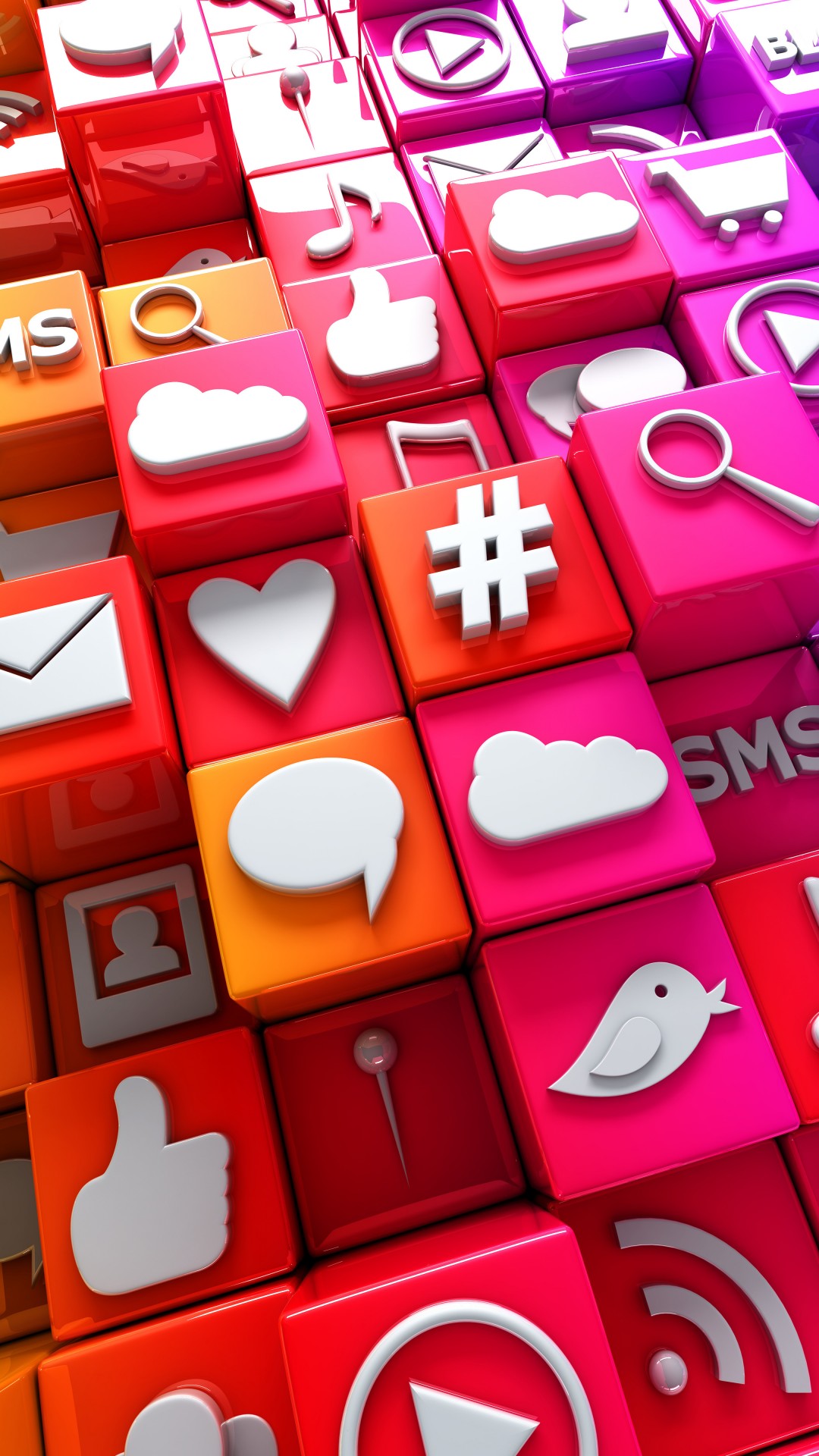 Social Media Icons 3D Cubes Wallpaper - 1080x1920