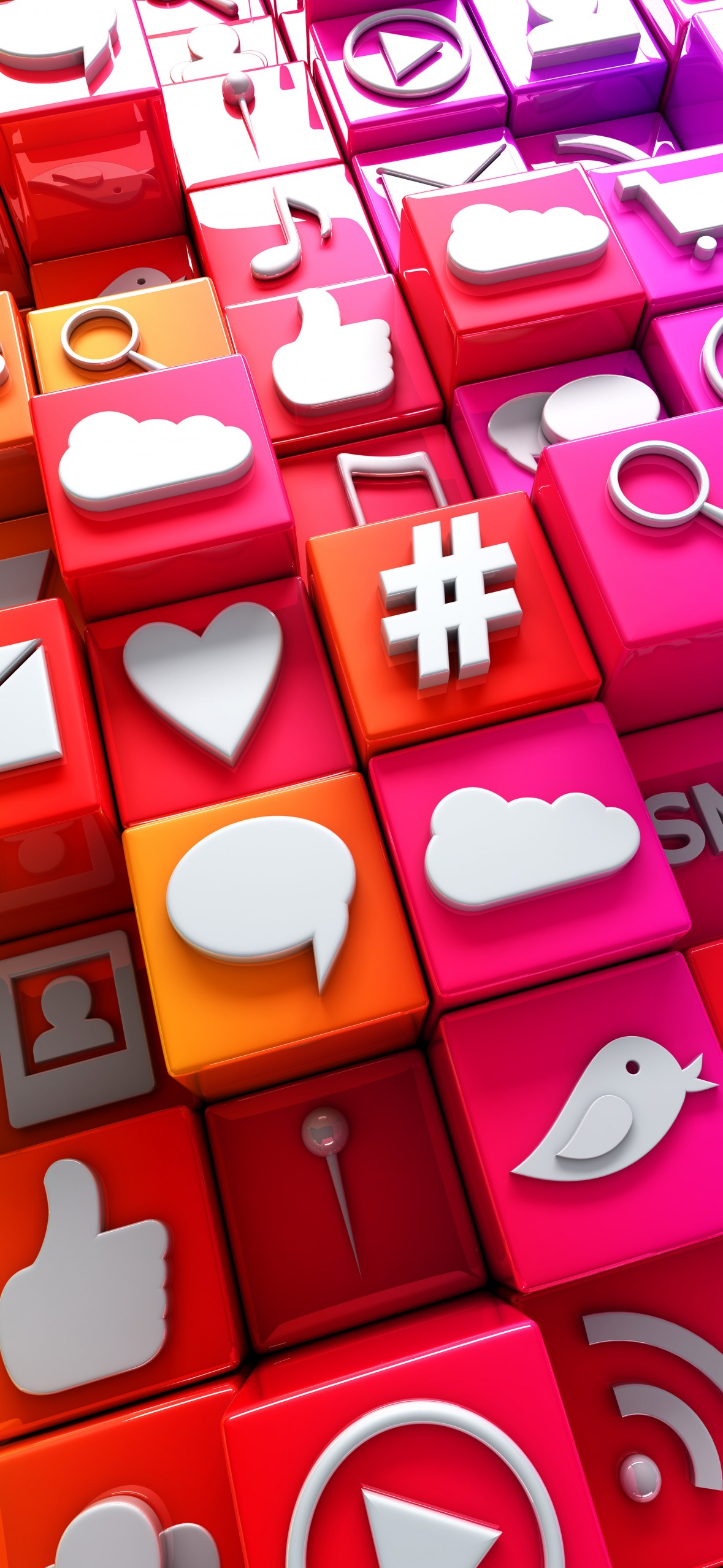Social Media Icons 3D Cubes Wallpaper - 1179x2556