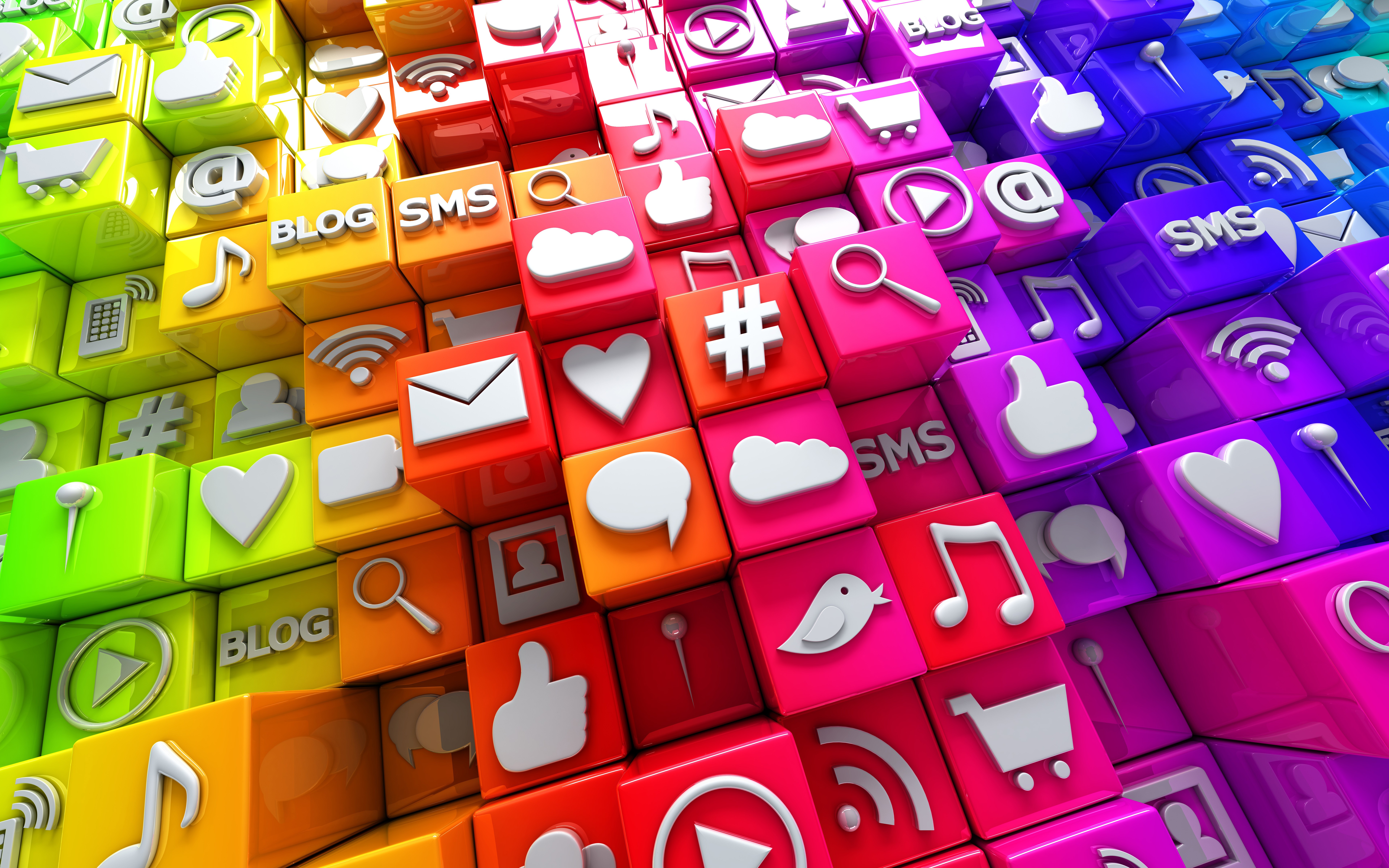 Social Media Icons 3D Cubes Wallpaper - 7680x4800