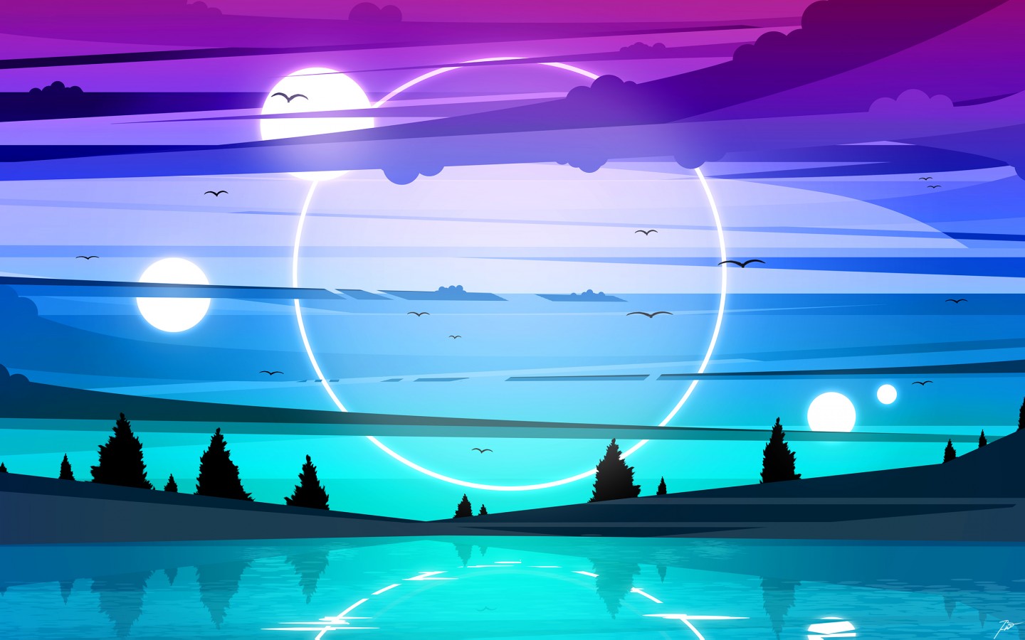 Abstract Moon Senery Pastelcolors Wallpaper - 1440x900