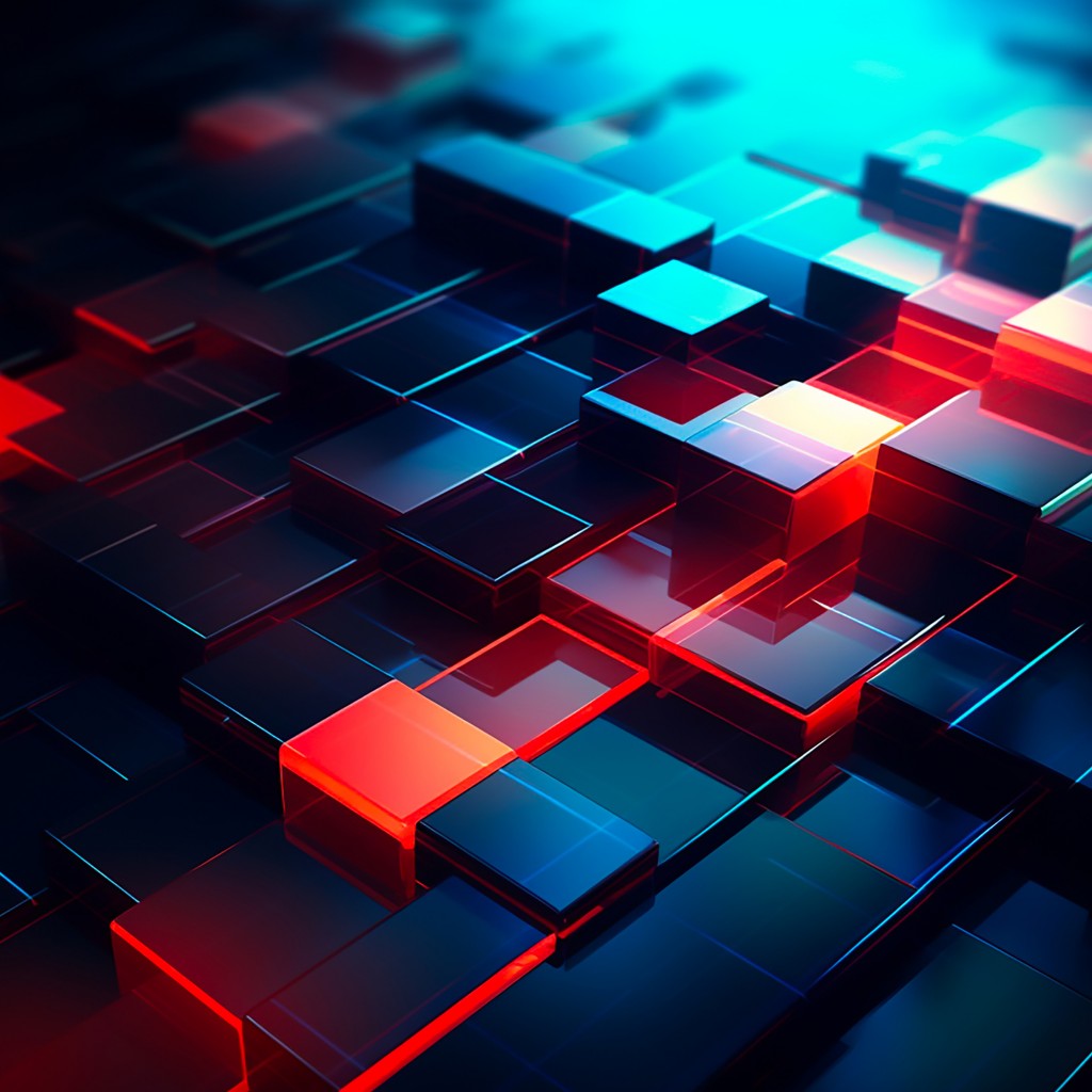 Red Glow Blue Abstract Cubes Wallpaper - 1024x1024