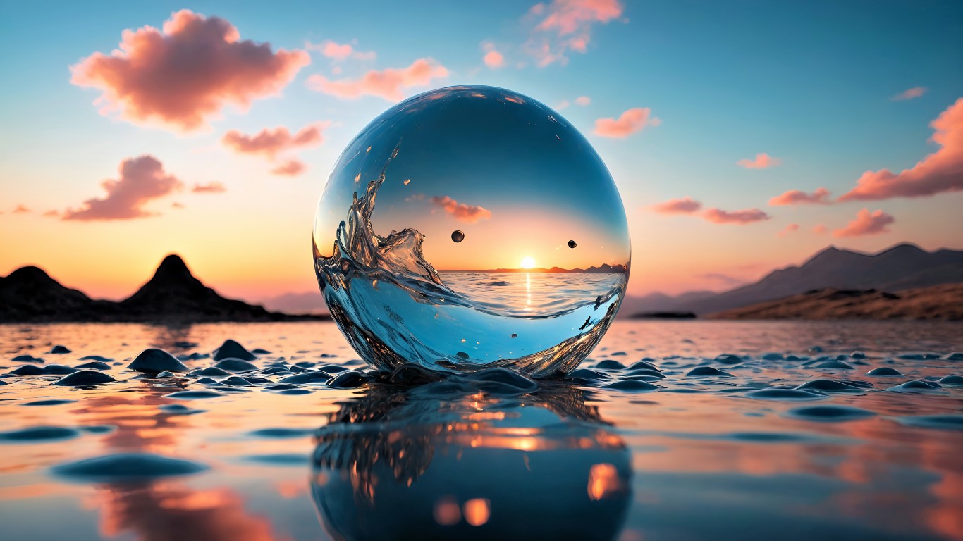 Ai Clear Glass Ball Water Clouds Wallpaper - 1366x768