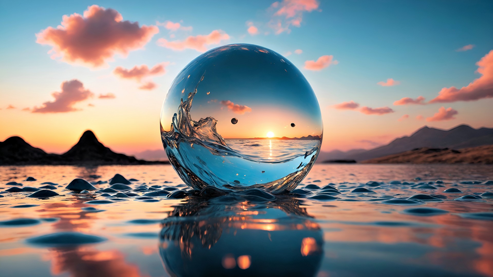 Ai Clear Glass Ball Water Clouds Wallpaper - 1920x1080