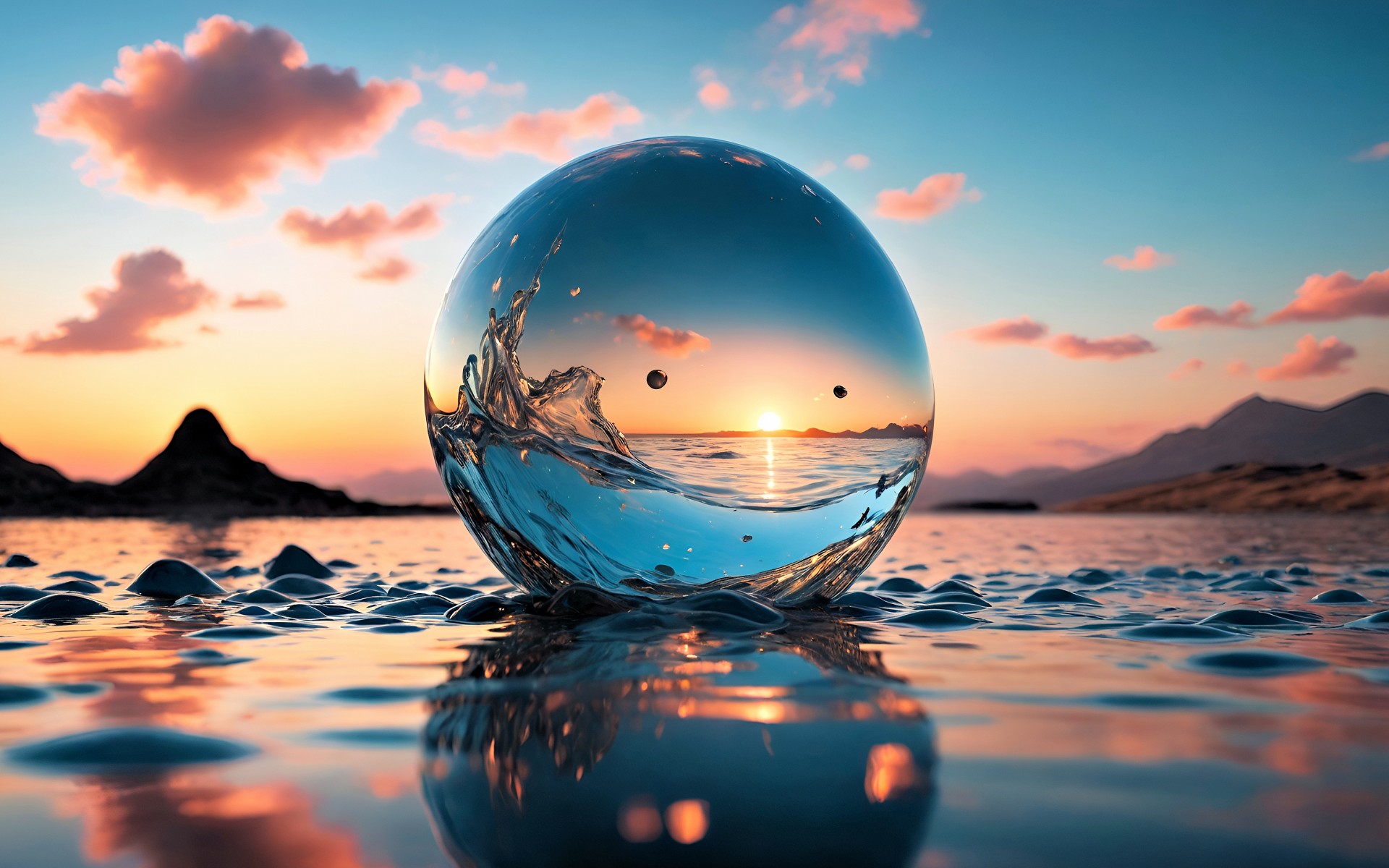 Ai Clear Glass Ball Water Clouds Wallpaper - 1920x1200