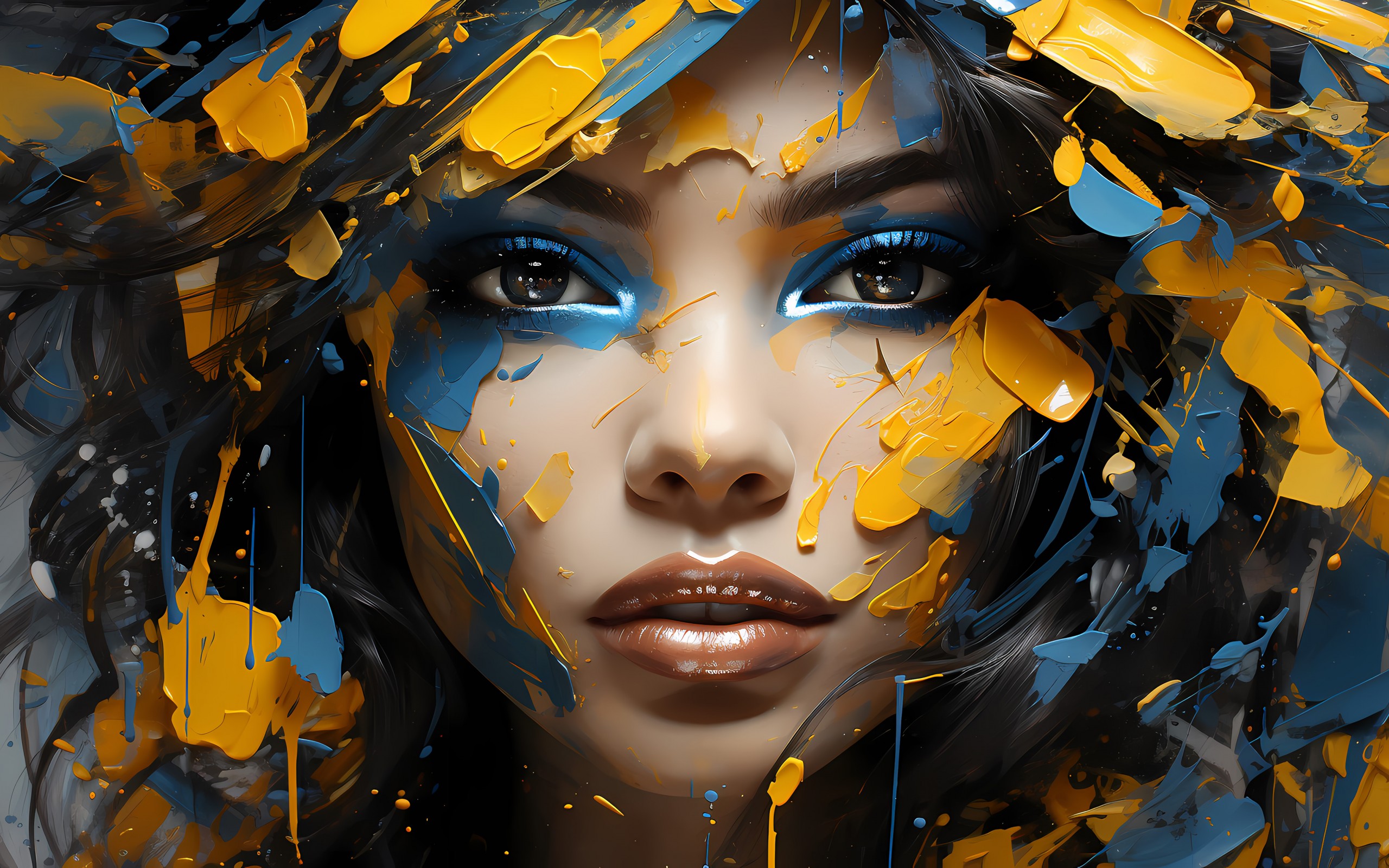 Ai Blue Yellow Woman Face Art Wallpaper - 2560x1600