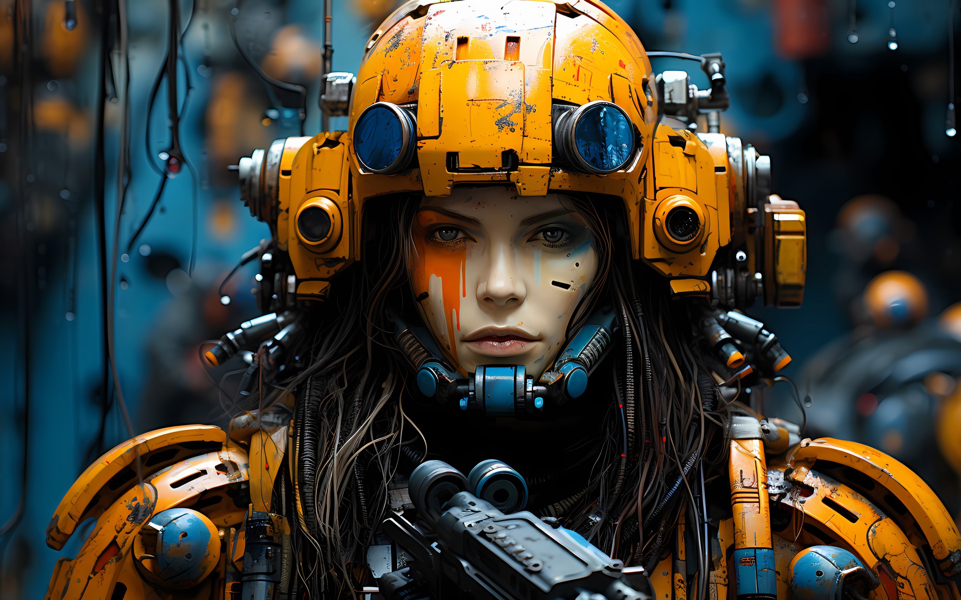 Ai Yellow Helmet Woman Futuristic Wallpaper - 1920x1200