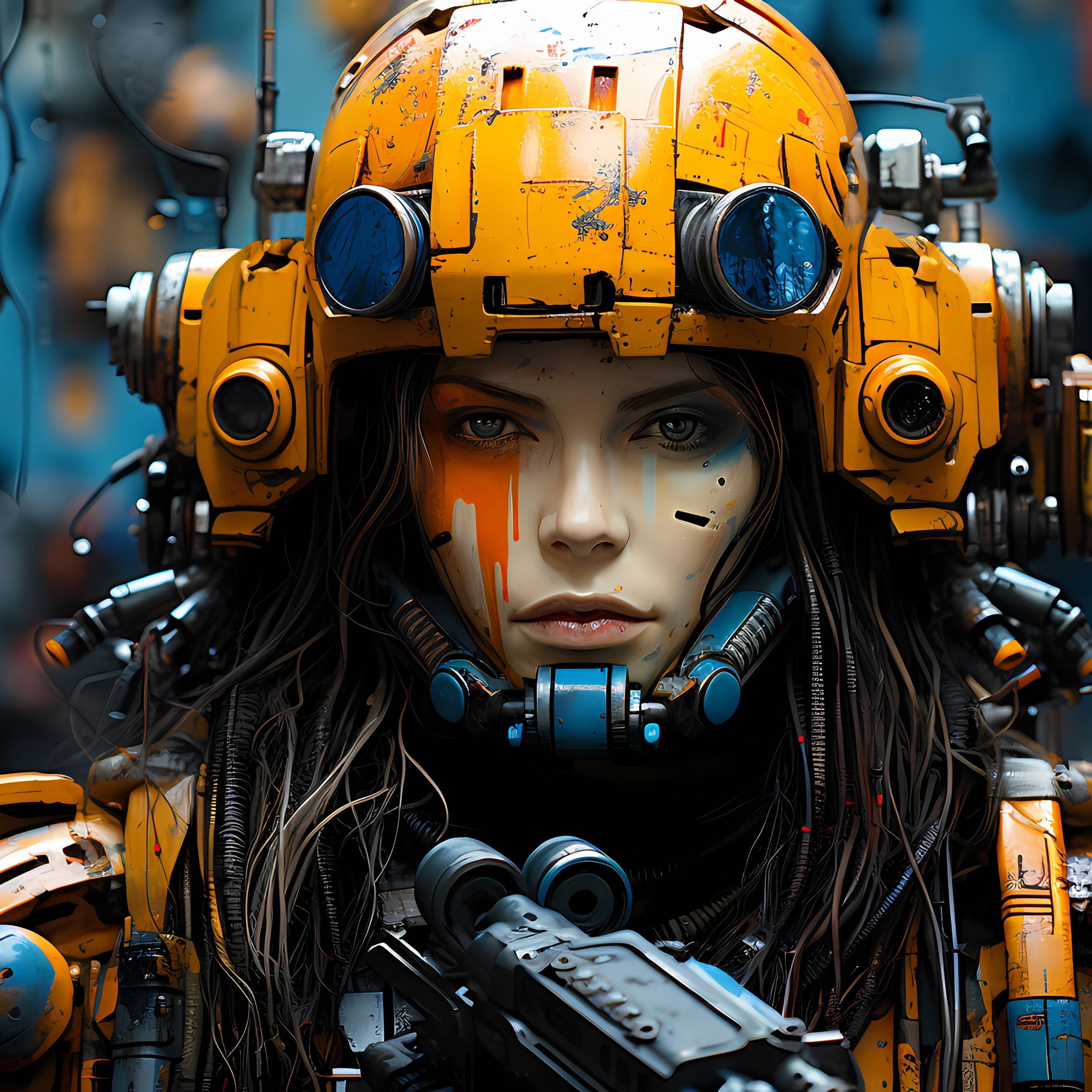 Ai Yellow Helmet Woman Futuristic Wallpaper - 2732x2732