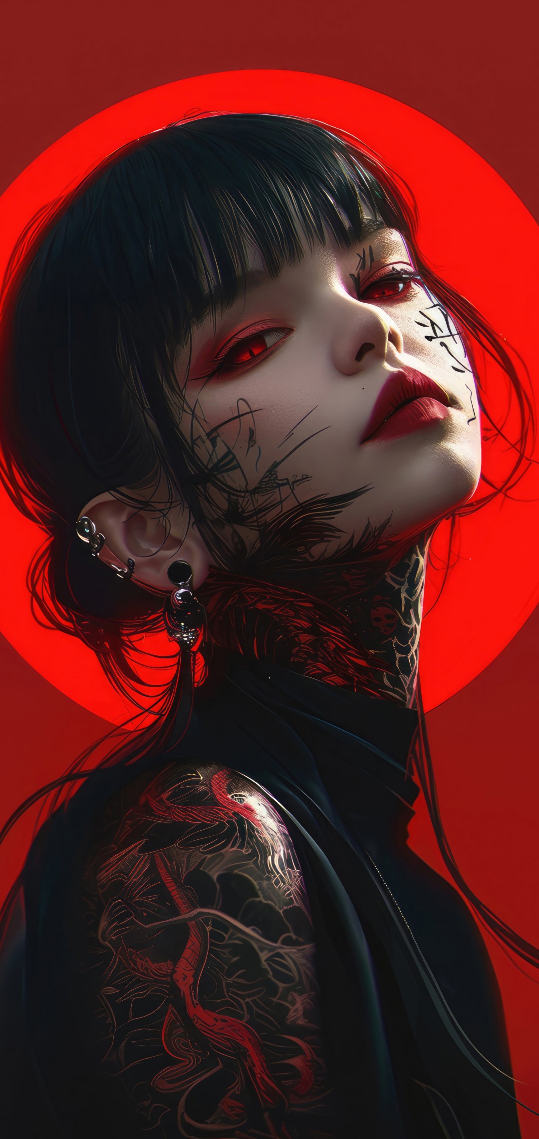 Anime Girl Tattoo Red Eyes Art Wallpaper - 1080x2280