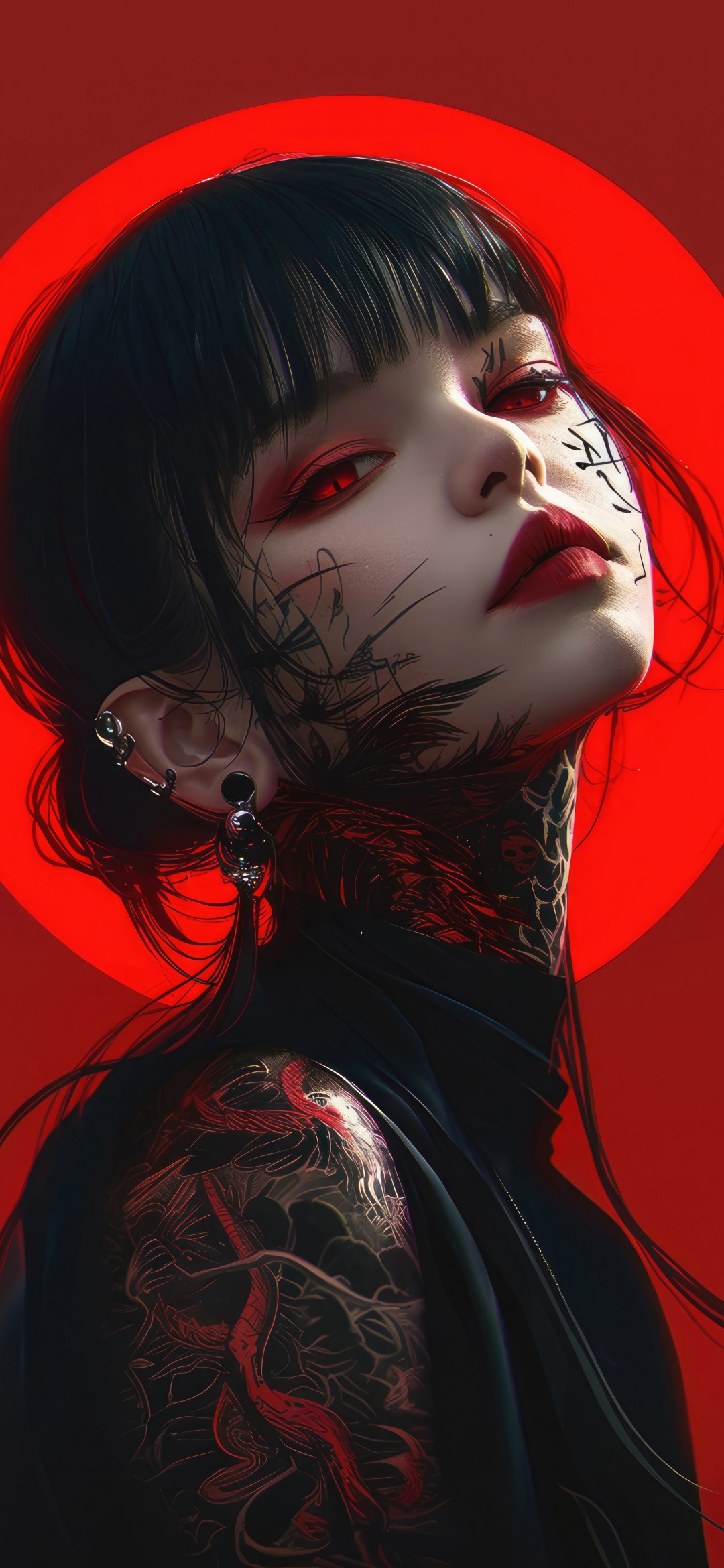 Anime Girl Tattoo Red Eyes Art Wallpaper - 1080x2340
