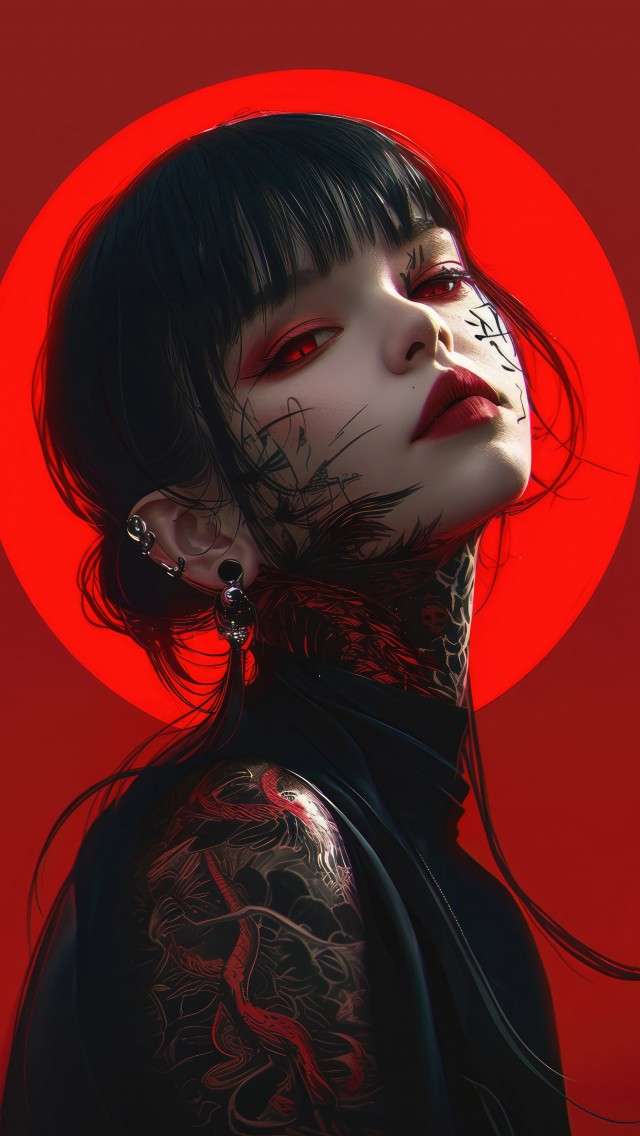 Anime Girl Tattoo Red Eyes Art Wallpaper - 640x1136
