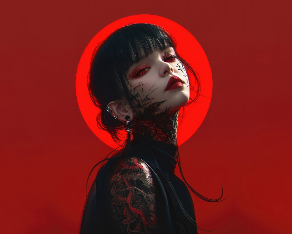 Anime Girl Tattoo Red Eyes Art Wallpaper - 960x768