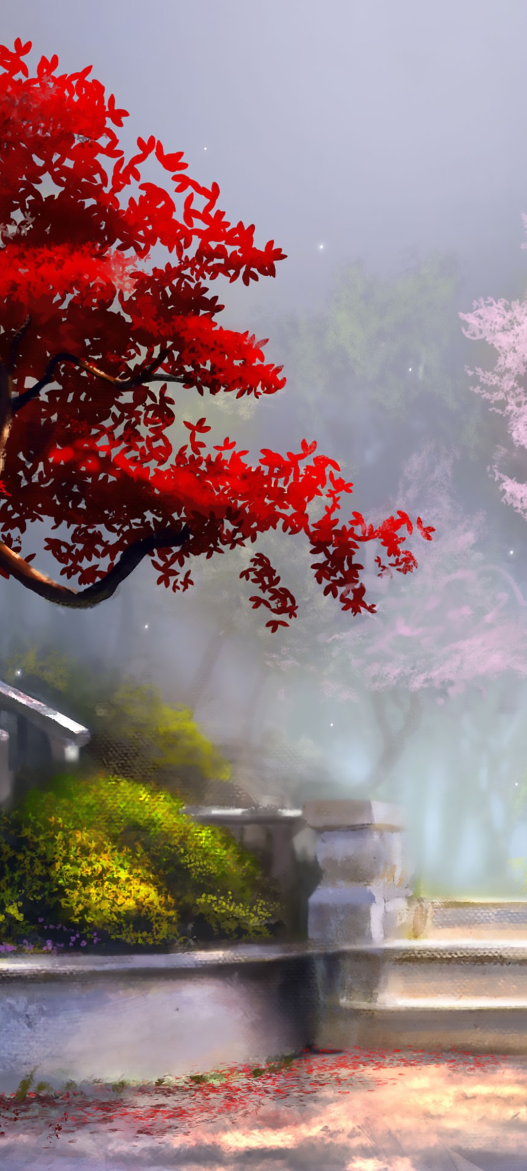Art Painting Red Bonsai Tree Garden Wallpaper - 1080x2400