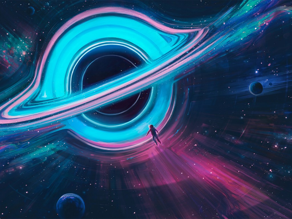 Astronaut Black Hole Space Illustration Wallpaper - 1024x768