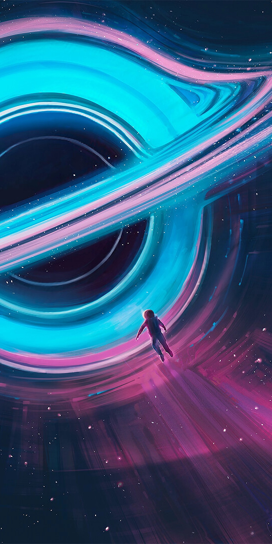 Astronaut Black Hole Space Illustration Wallpaper - 1080x2160