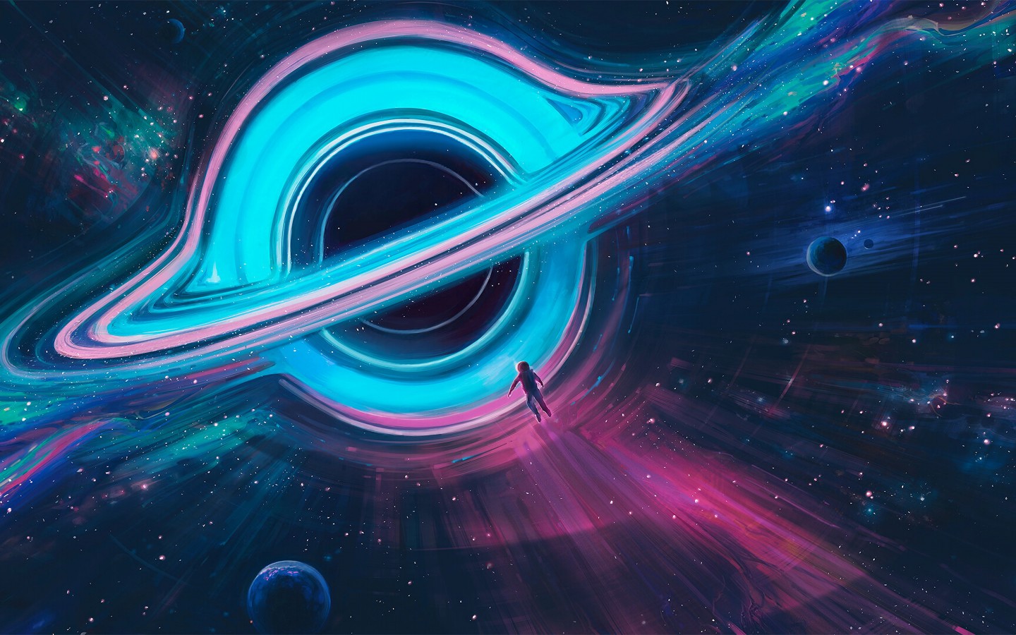 Astronaut Black Hole Space Illustration Wallpaper - 1440x900