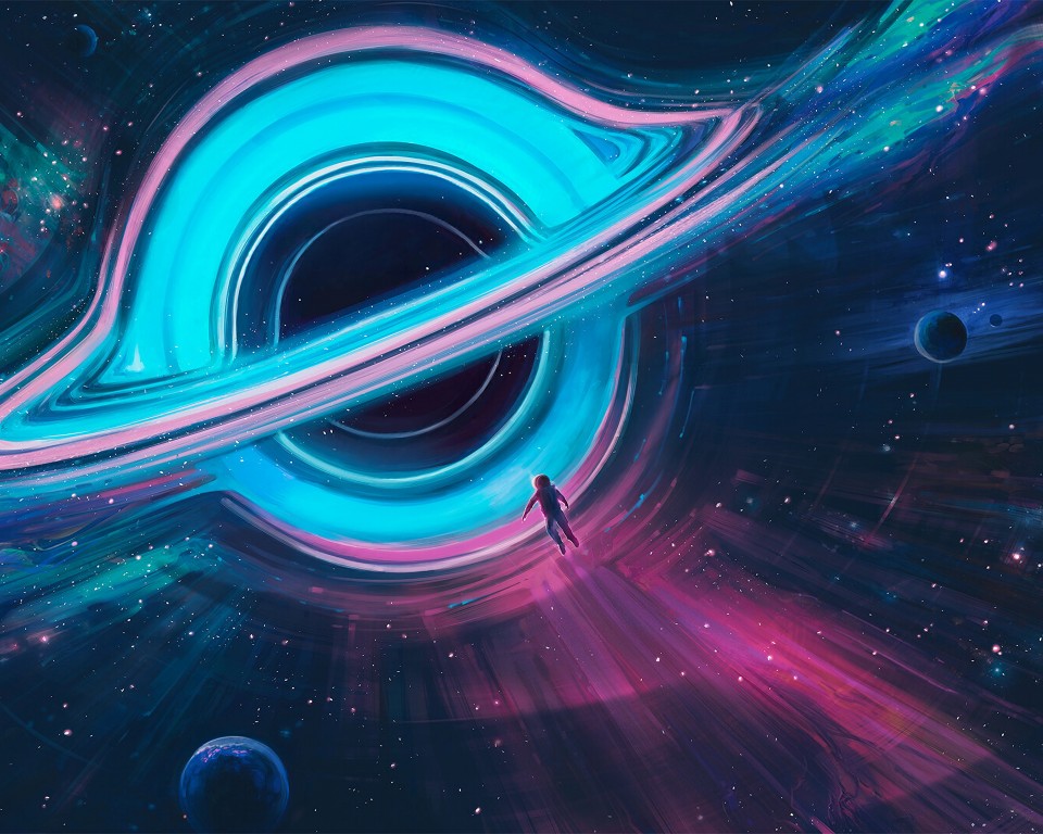 Astronaut Black Hole Space Illustration Wallpaper - 960x768