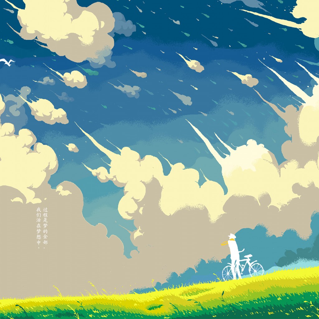 Beautiful Clouds Flying Bird Art Wallpaper - 1024x1024