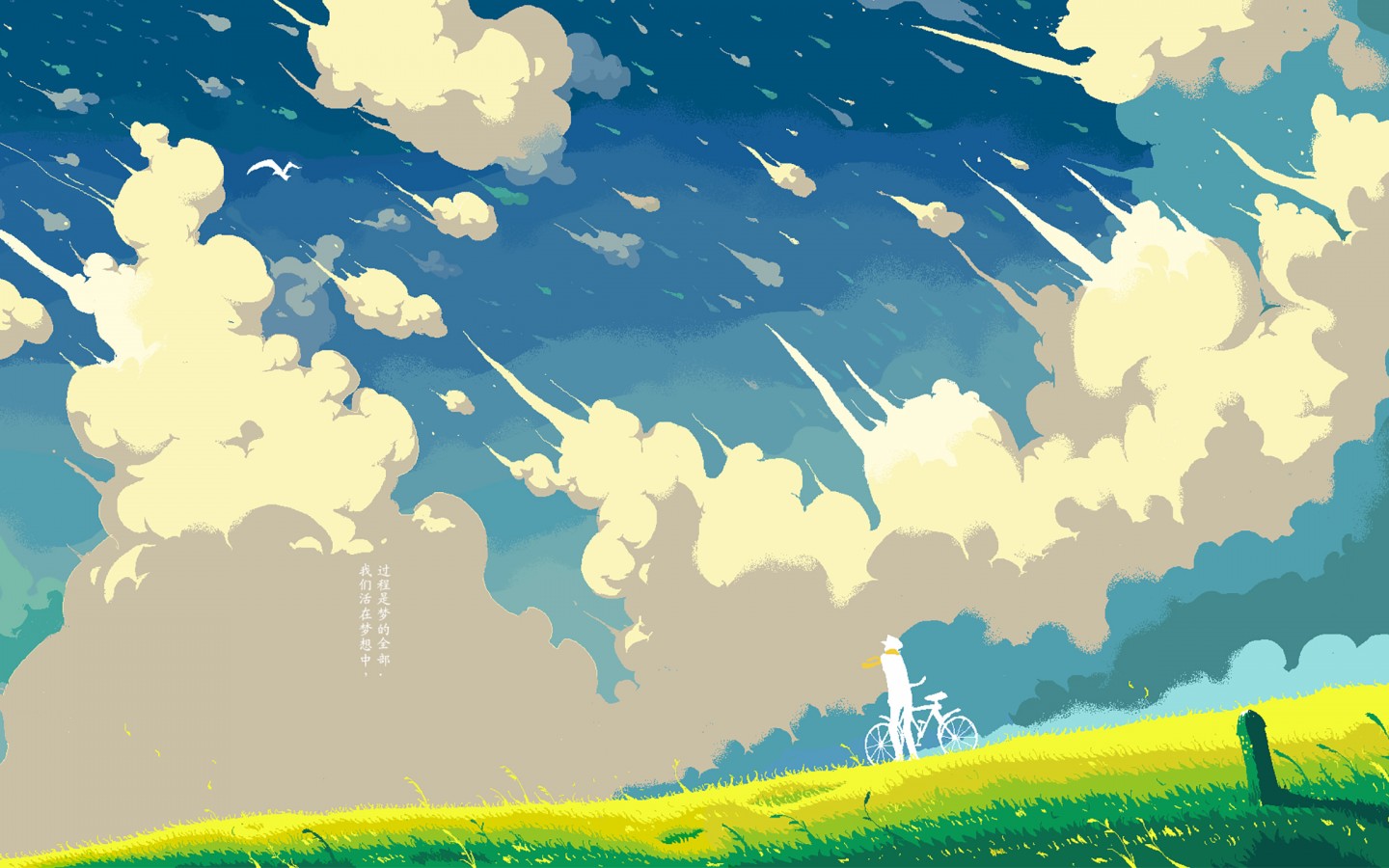 Beautiful Clouds Flying Bird Art Wallpaper - 1440x900