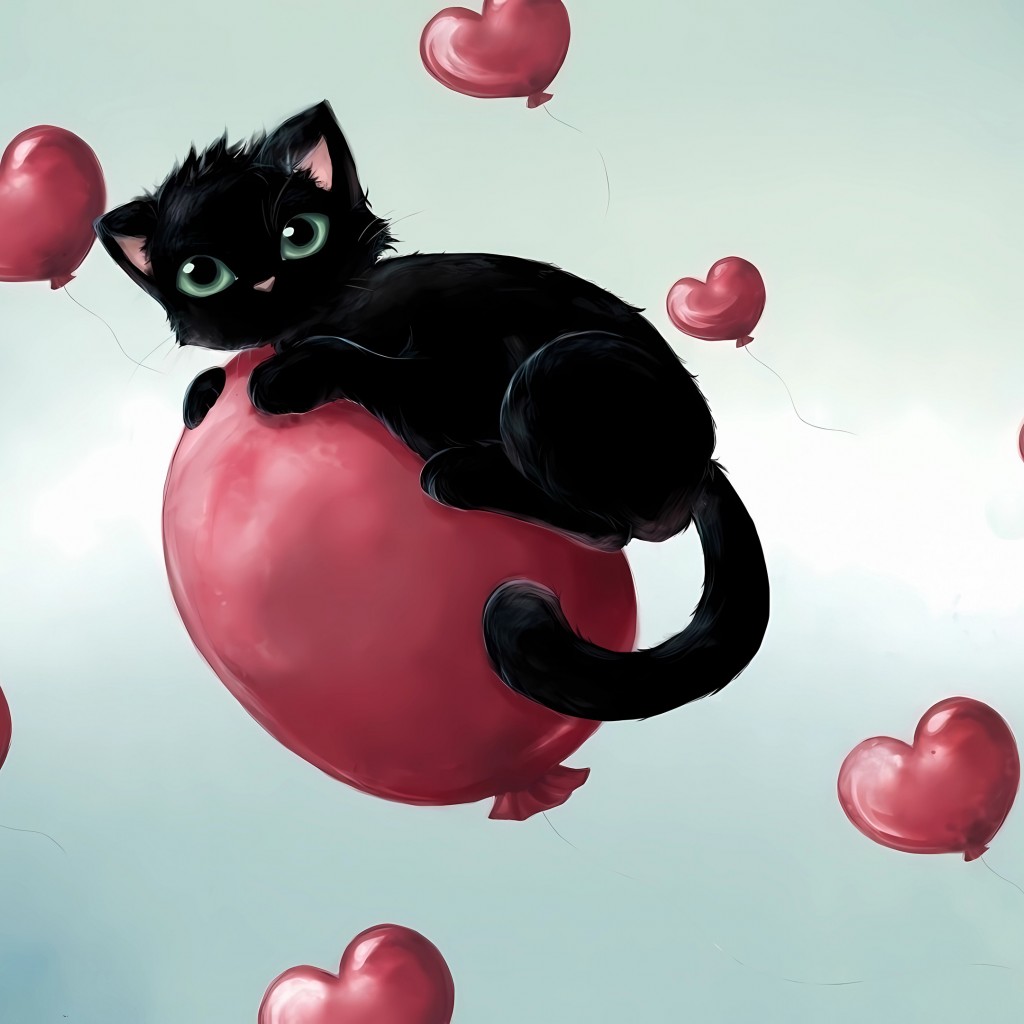 Black Cat On Baloon Painting Wallpaper - 1024x1024