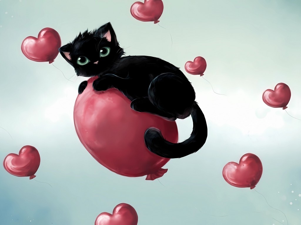 Black Cat On Baloon Painting Wallpaper - 1024x768