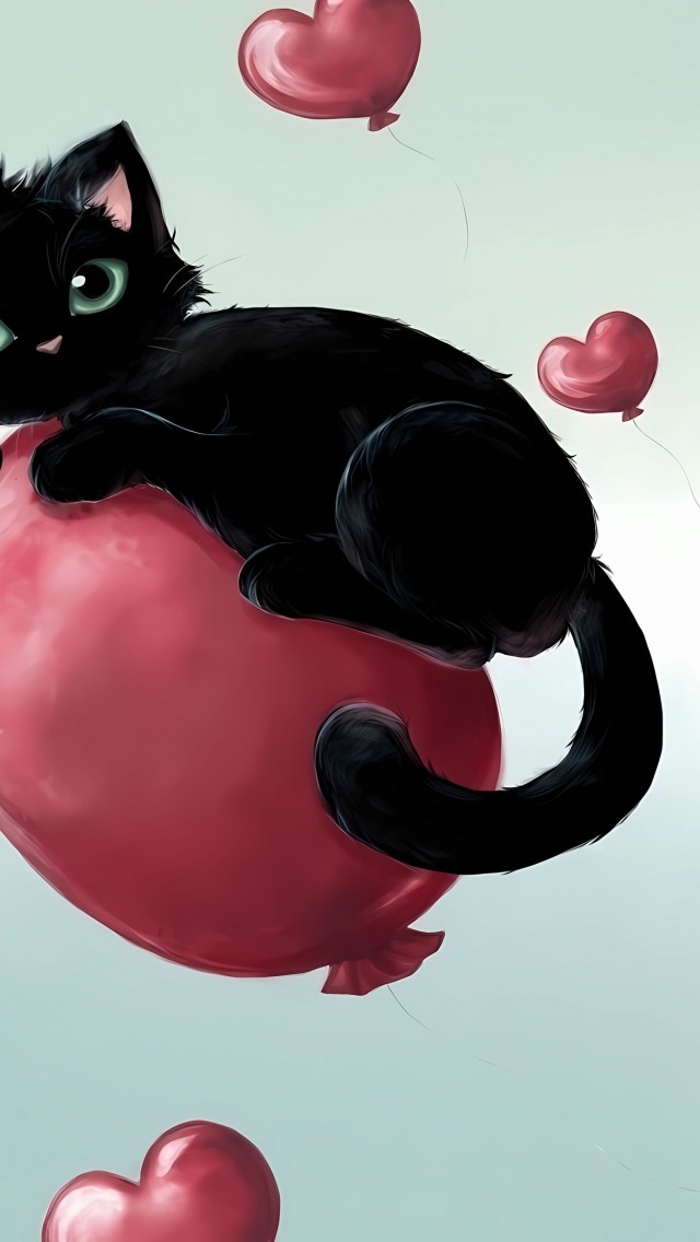 Black Cat On Baloon Painting Wallpaper - 640x1136