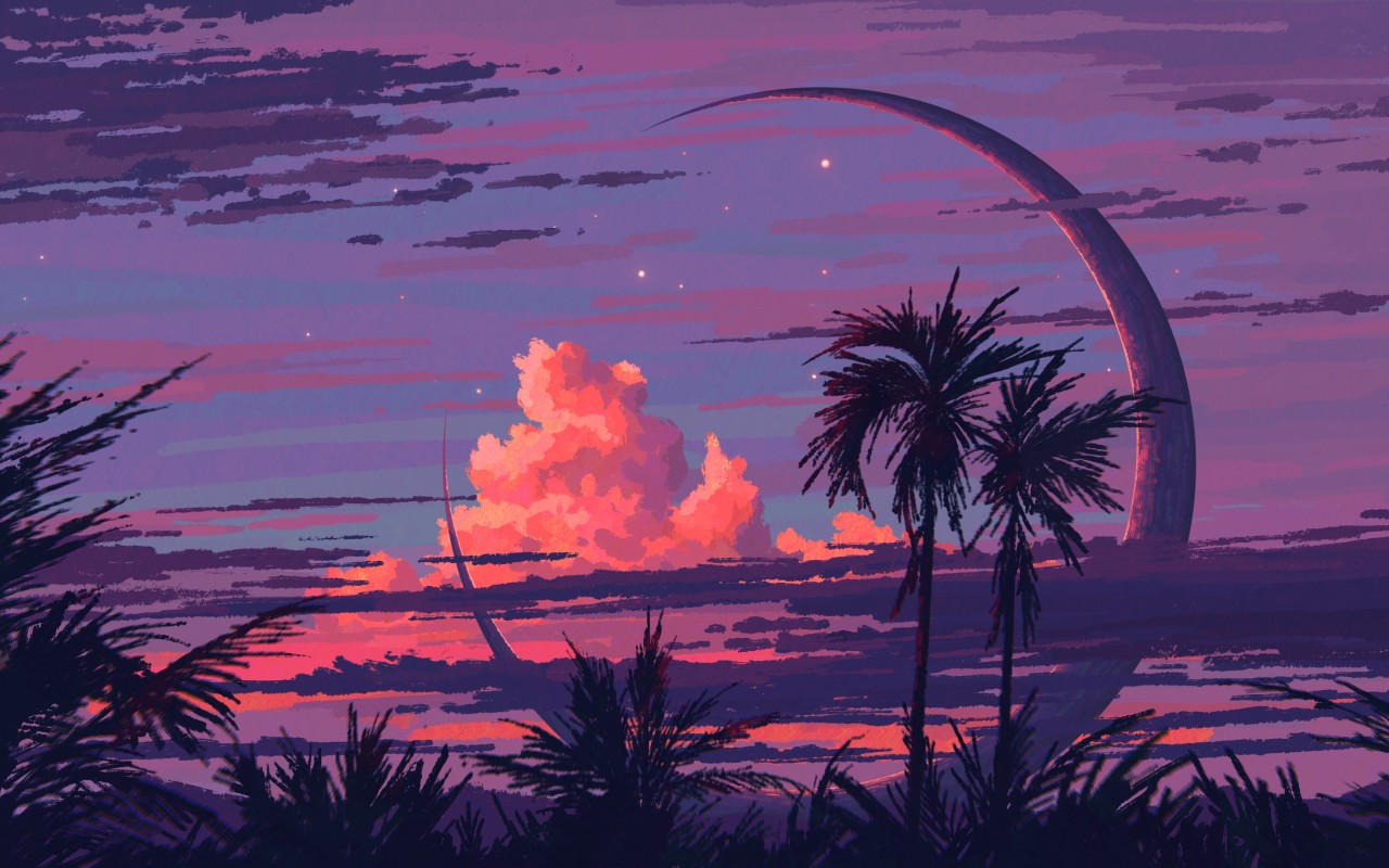 Black Moon Scenery Digital Art Wallpaper - 1280x800