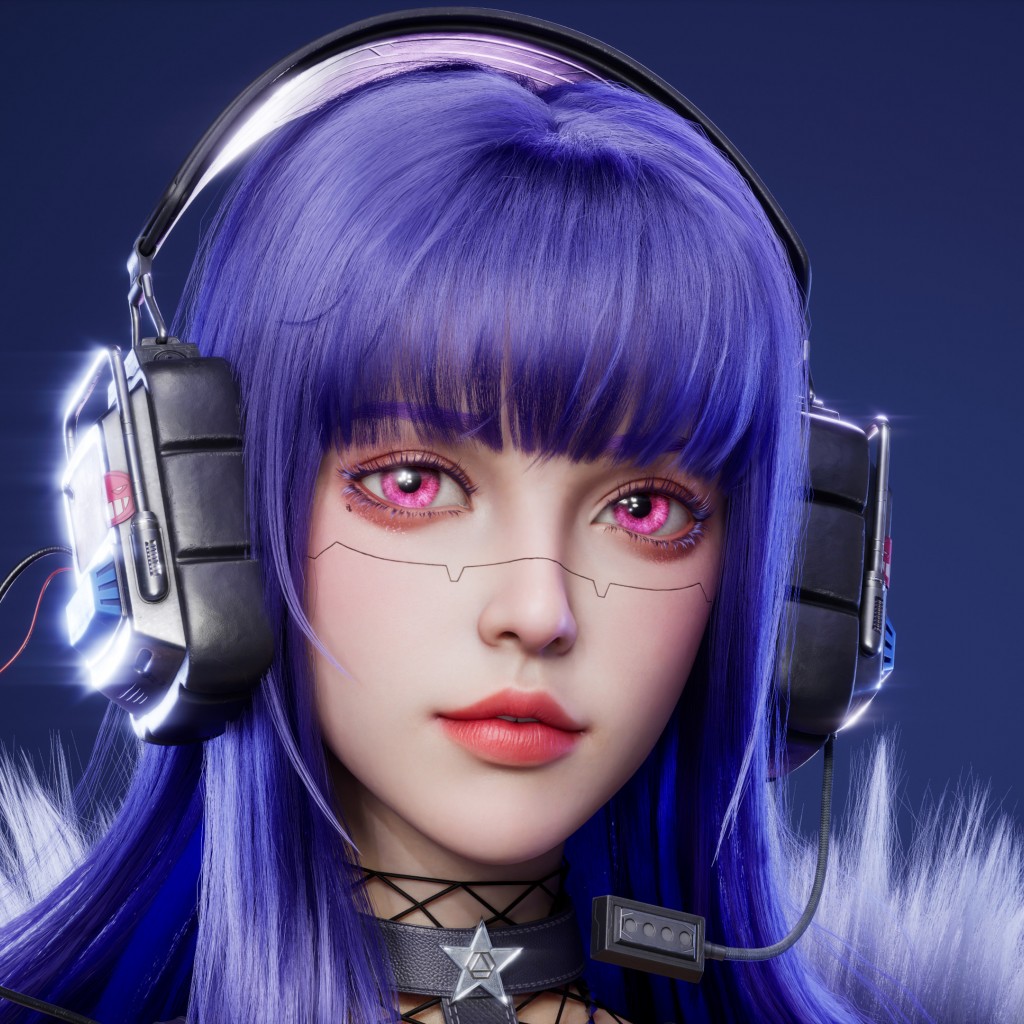 Blue Hair CGI Girl Headphones Wallpaper - 1024x1024