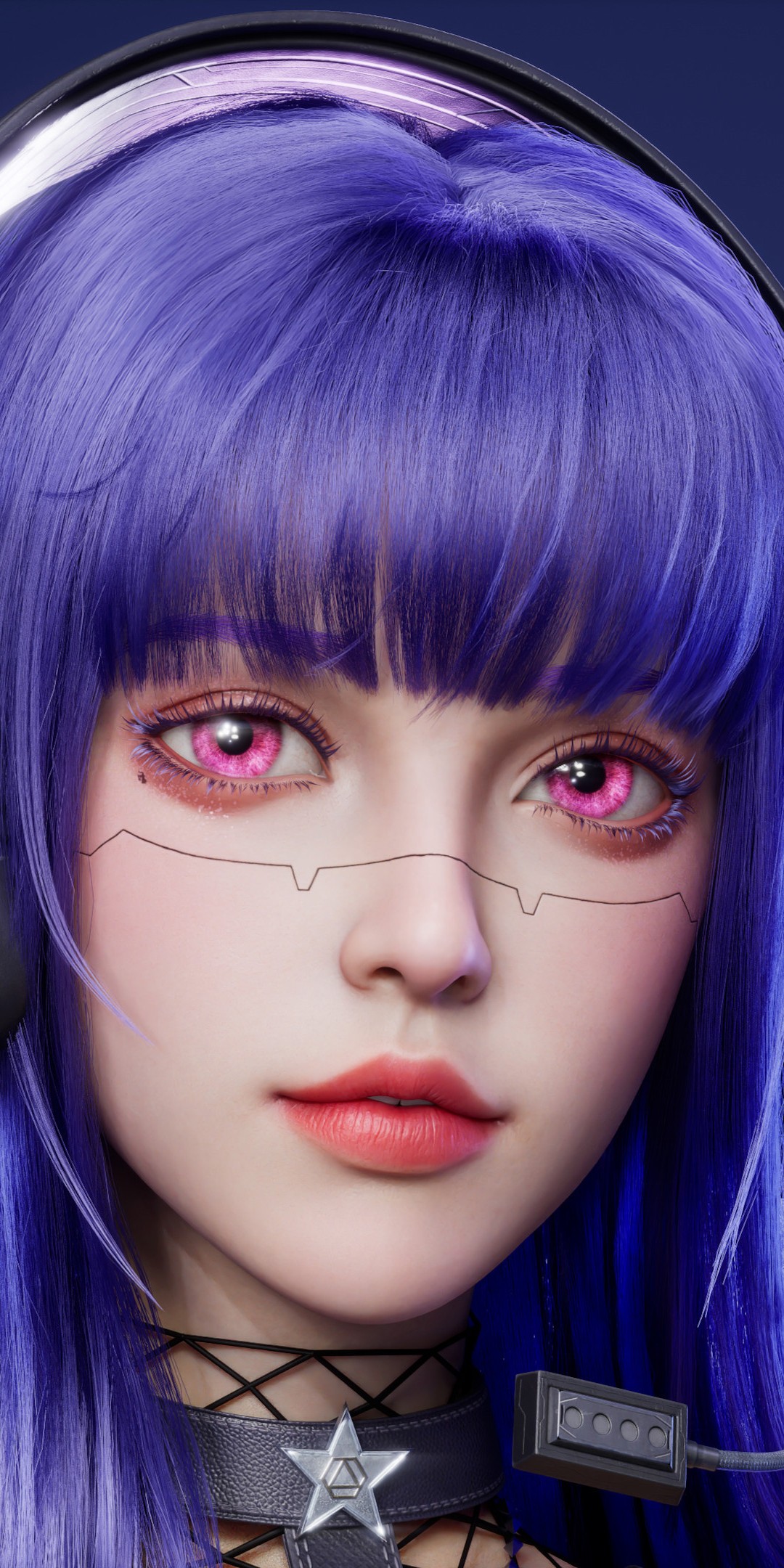 Blue Hair CGI Girl Headphones Wallpaper - 1080x2160