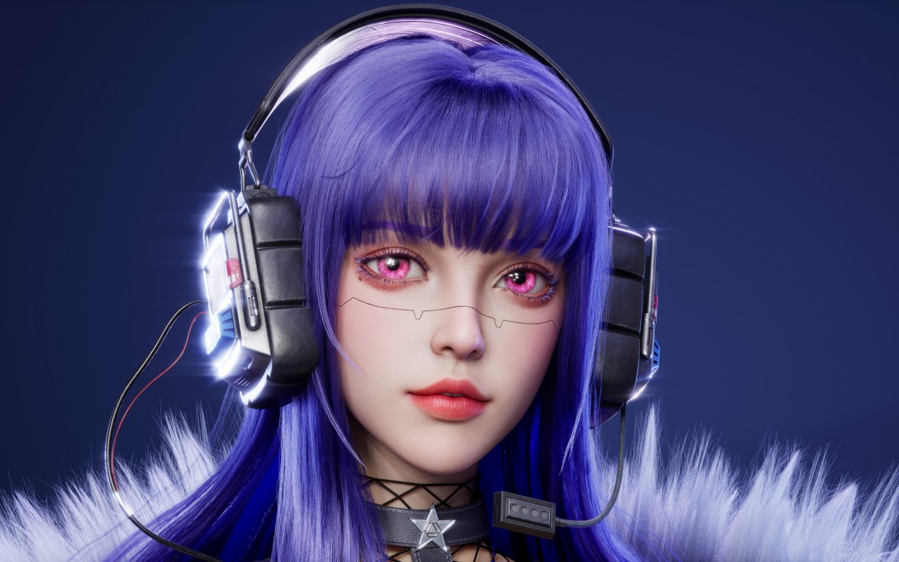 Blue Hair CGI Girl Headphones Wallpaper - 1280x800
