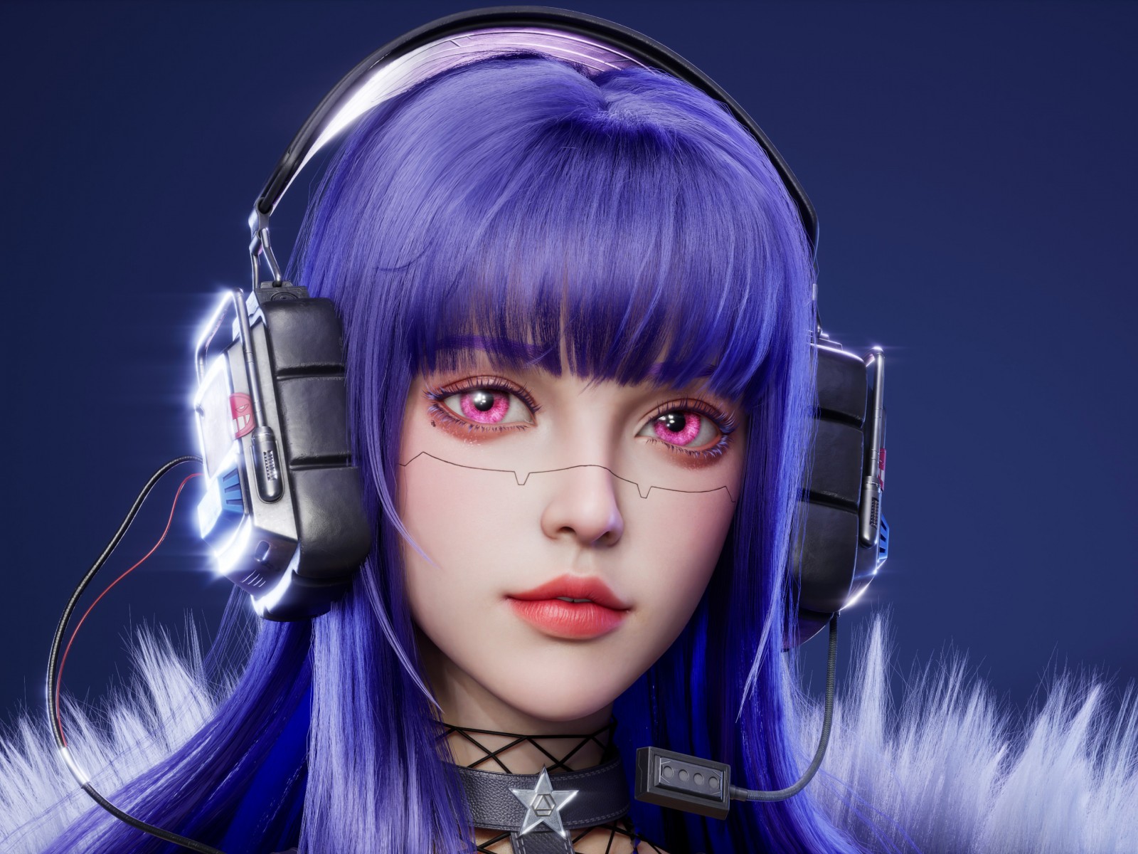 Blue Hair CGI Girl Headphones Wallpaper - 1600x1200