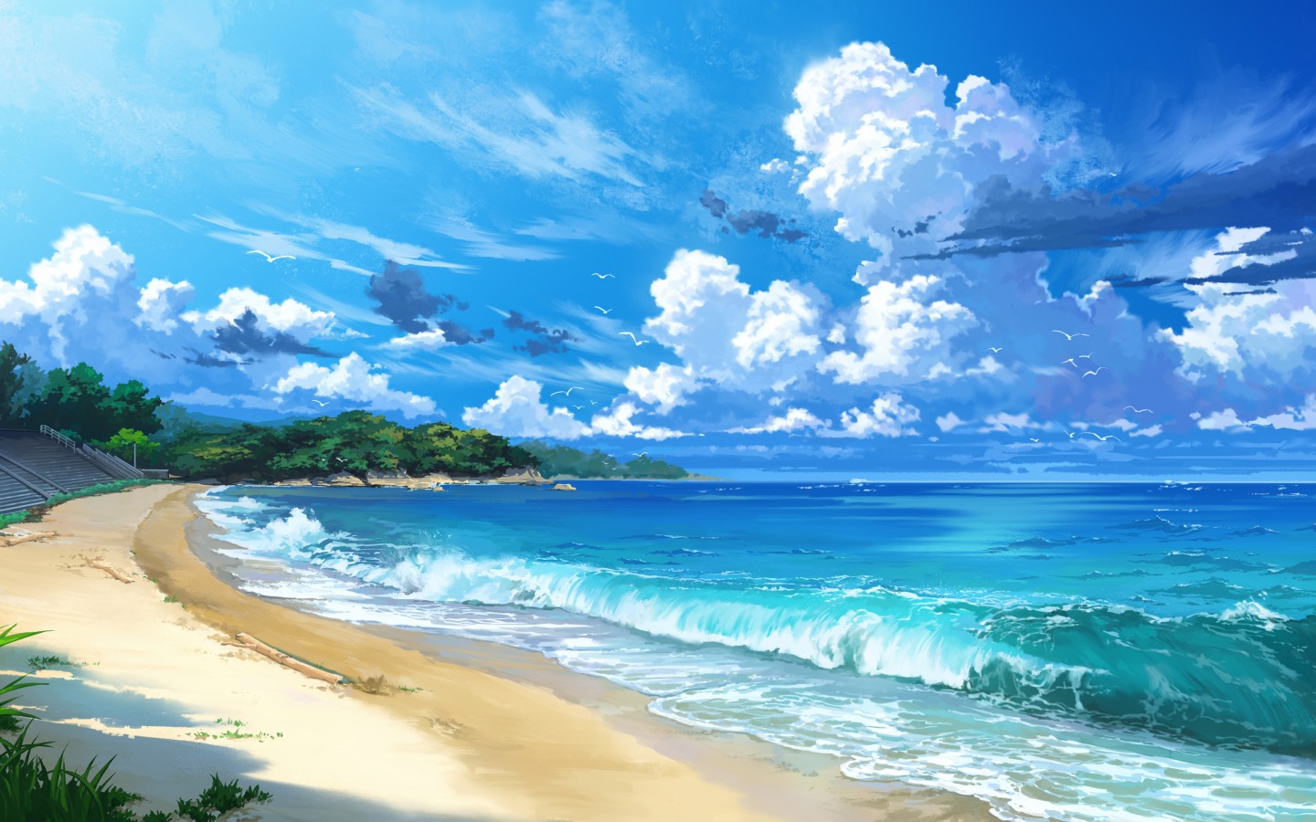 Blue Sea Waves Clouds Scenery Wallpaper - 1440x900