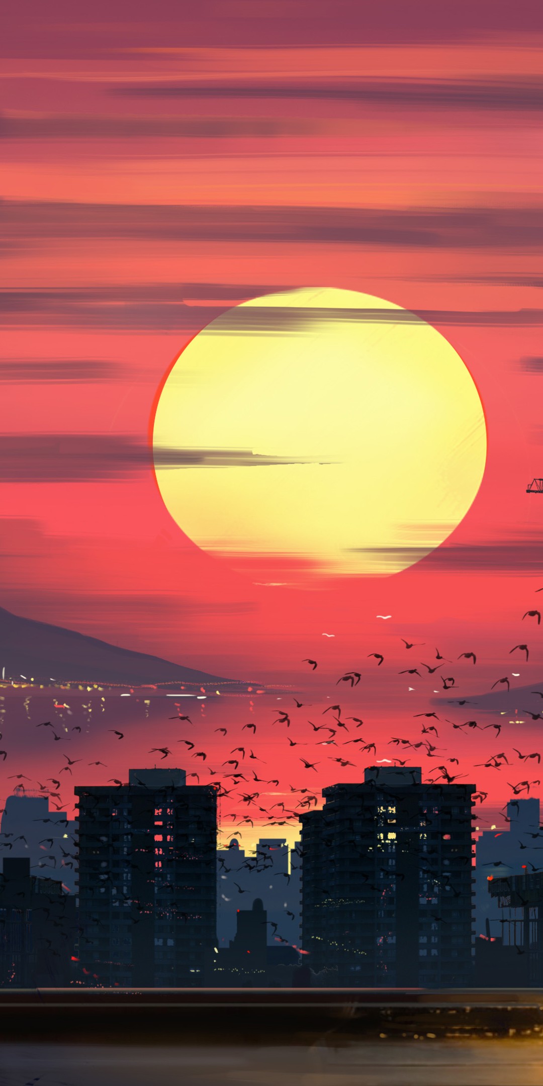 Cat Lantern Sunset Cityscape Scenery Wallpaper - 1080x2160