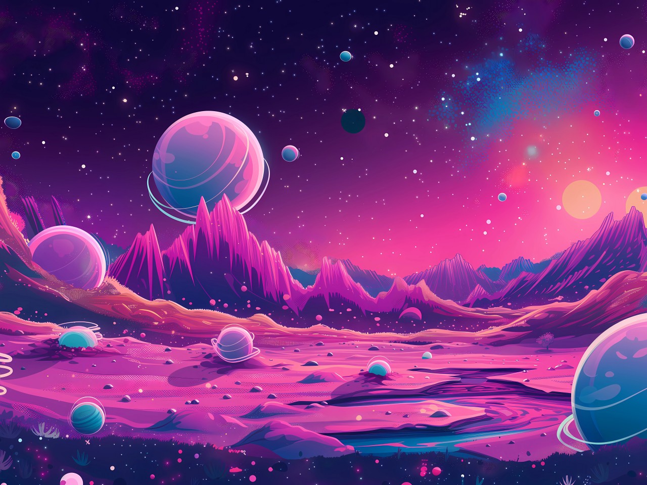Cosmic Space Ai Art Purple Planets Wallpaper - 1280x960