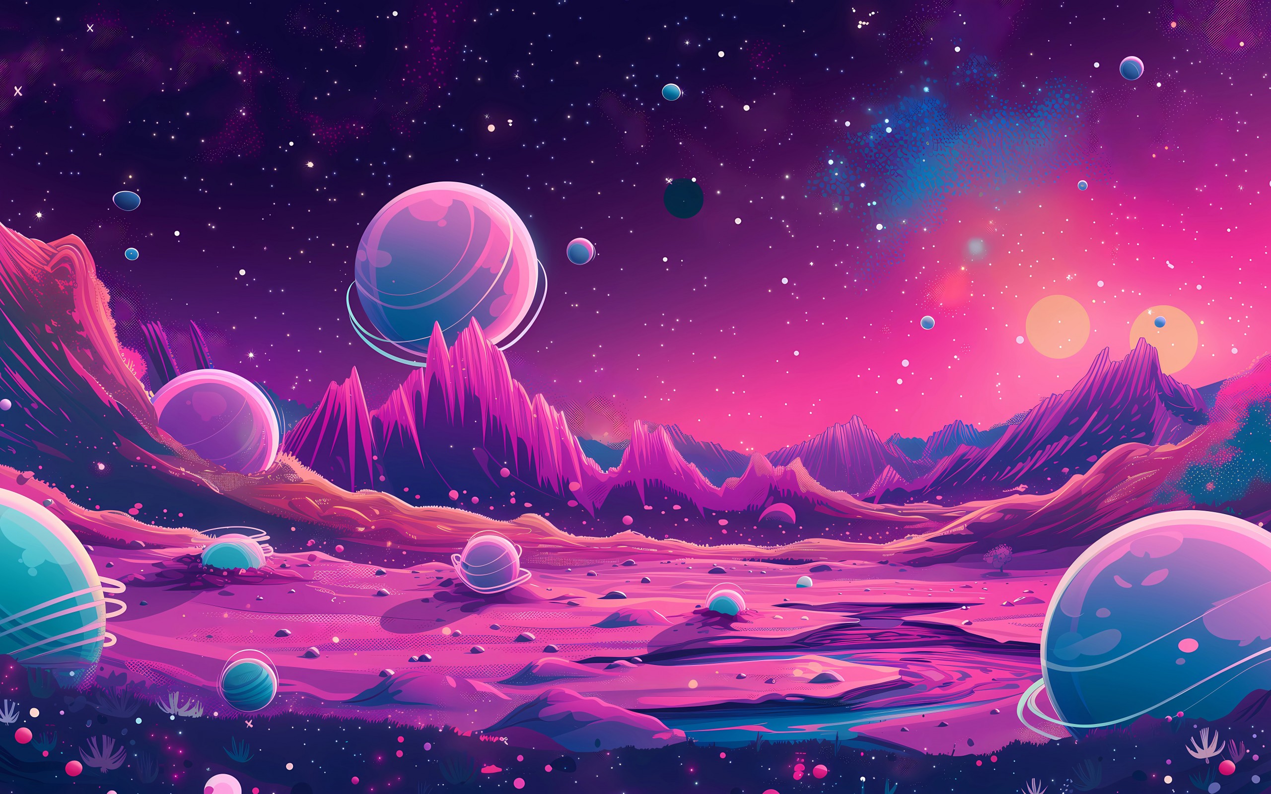 Cosmic Space Ai Art Purple Planets Wallpaper - 2560x1600