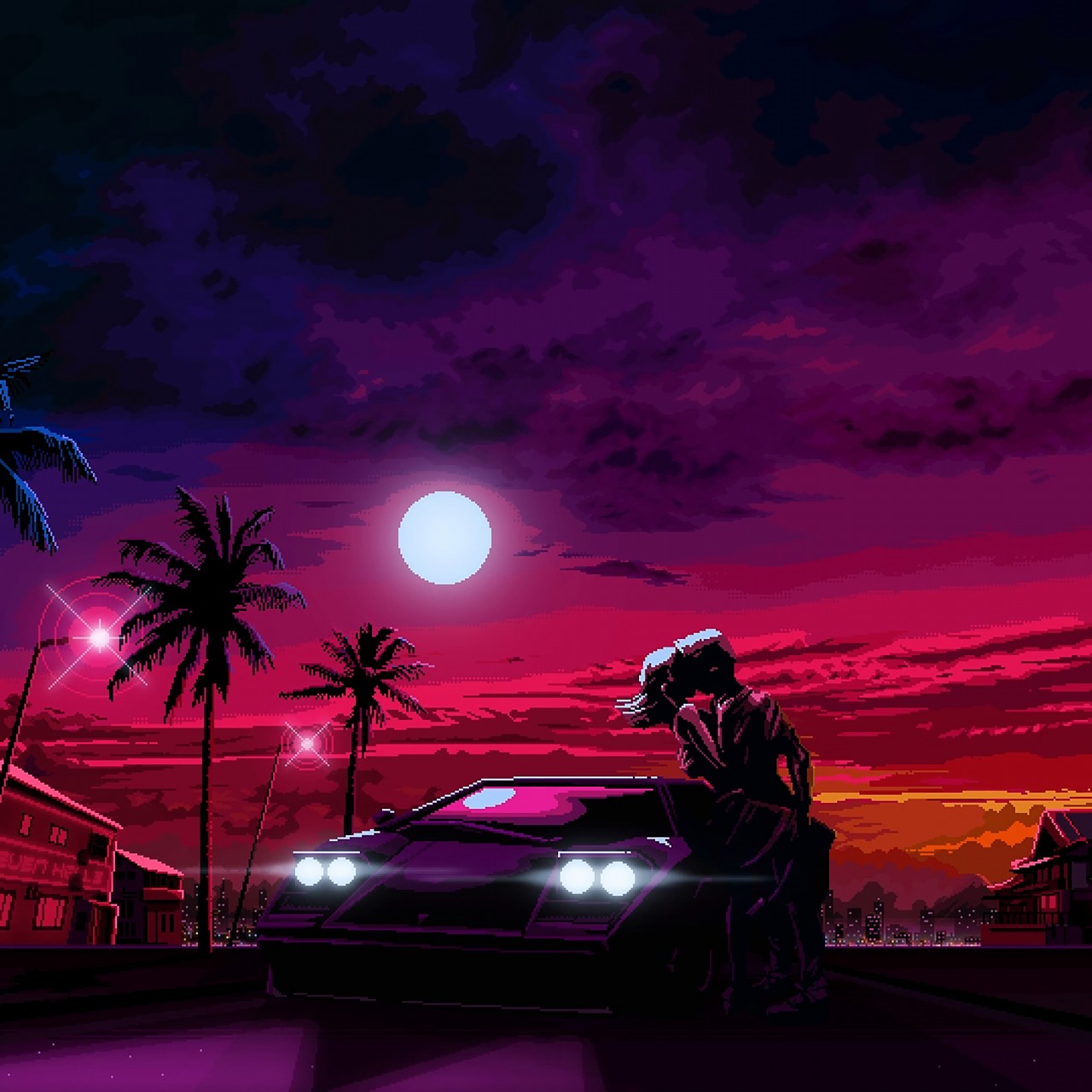Couple Nightscape Car Pixel Art Wallpaper - 1280x1280