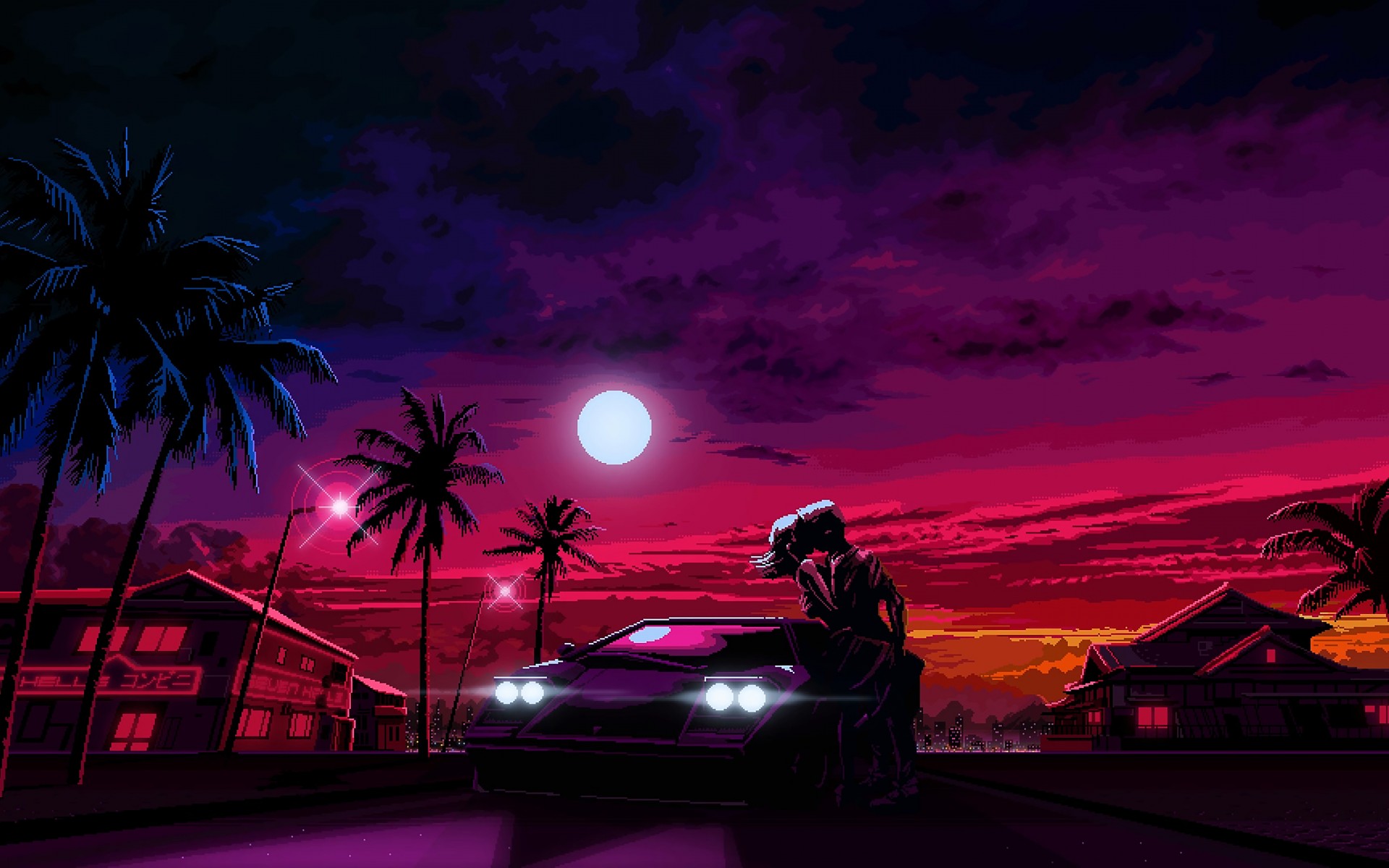 Couple Nightscape Car Pixel Art Wallpaper - 1920x1200